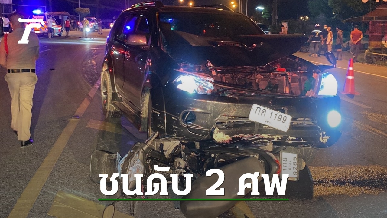 "ฟอร์จูนเนอร์" ซิ่งเข้าโค้ง พุ่งชน จยย. 2 ผัวเมีย รอข้ามถนนอย่างจัง สลด ผัวดับคาที่-เมียสาหัสไปตาย รพ.