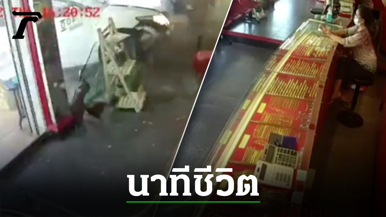 เหยียบเบรกผิดกลายเป็นคันเร่ง เก๋งฮอนด้าพุ่งชนสนั่น กระจกหน้าร้านทองแตกกระจาย ส่งผลให้มีผู้บาดเจ็บ 2 ราย คนขับไม่ประสงค์ที่จะไปโรงพยาบาล เหตุเกิดในท้องที่ สภ.กาญจนดิษฐ์ จ.สุราษฎร์ธานี
