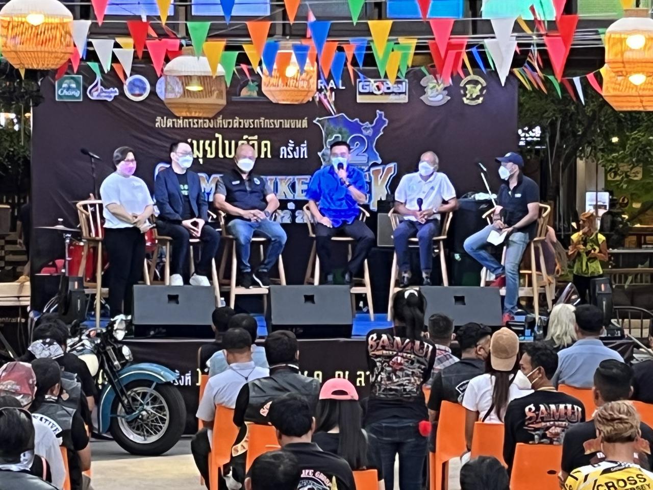 เมื่อวันที่ 22 เม.ย. 65 กลุ่มพี่น้องชาวไบค์เกอร์บนเกาะสมุย ร่วมถึงในส่วนข้าราชการ และการท่องเที่ยว ร่วมกันแถลงข่าวการจัดงาน สมุยไบค์วีคครั้งที่ 12 บริเวณหน้าห้างเซ็นทรัลสมุย โดยมีนายชยพล อินทรสุภา นายอำเภอเกาะสมุย เป็นประธาน และนายศุภฤกษ์ ทองสุข ประธานอุตสาหกรรมท่องเที่ยวจังหวัดสุราษฎร์ธานี ร่วมงานแถลงข่าวในครั้งนี้ ร่วมถึงทุกภาคส่วนที่เกี่ยวข้อง