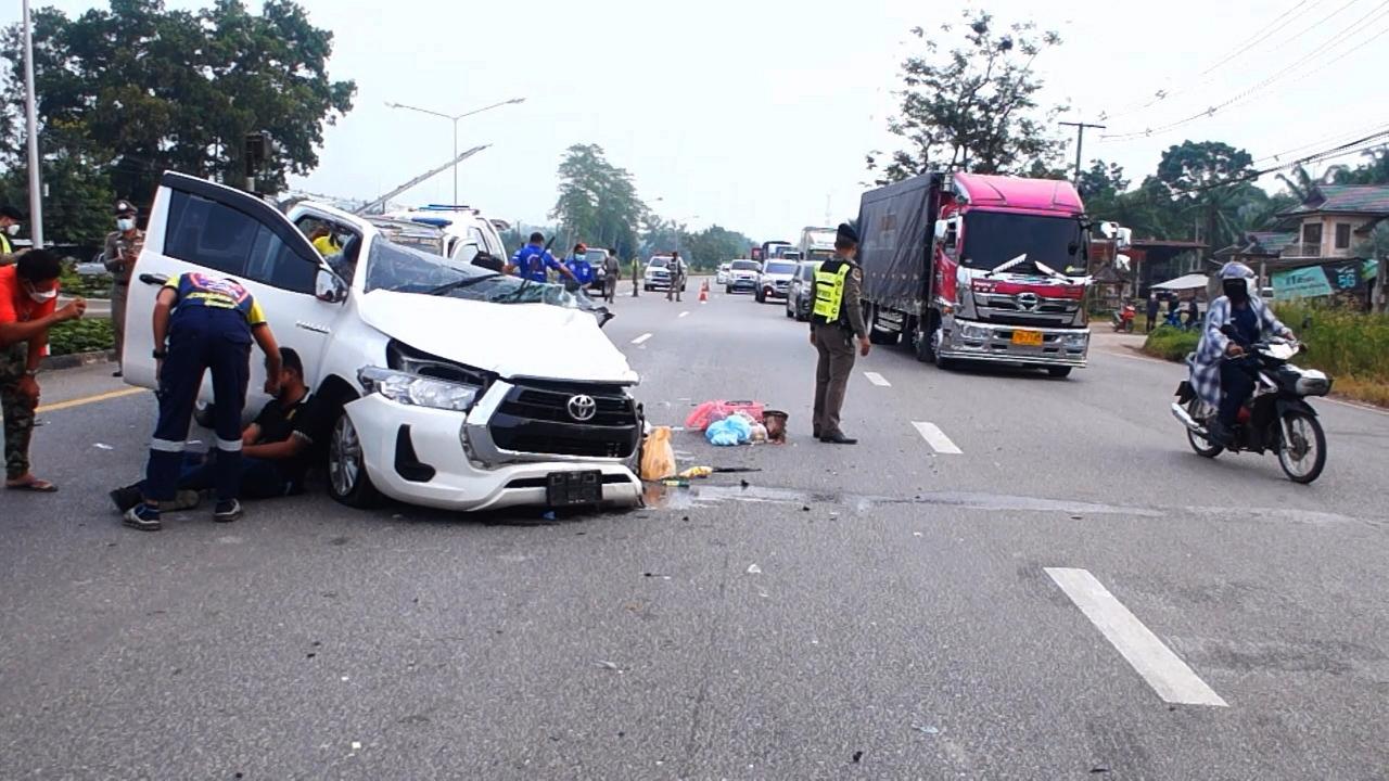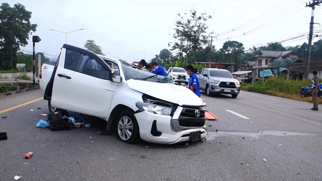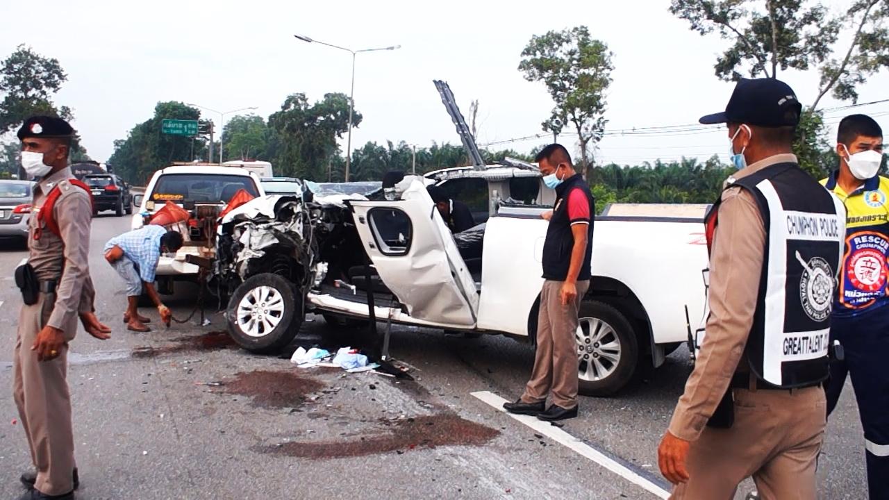 อุบัติเหตุรถกระบะป้ายแดงพุ่งชนท้ายรถบรรทุกพ่วง 22 ล้อ บนถนนสายเอเชีย 41 หนุ่มคนขับหลับใน เมียดับ ลูกชายวัย 3 เดือนรอดปาฏิหาริย์ ส่วนพี่เมียสาหัส