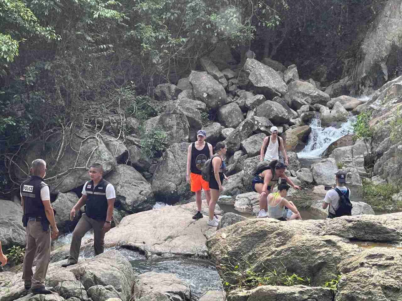 ด.ต.วัชรินทร์ เพรชหนู เจ้าหน้าที่ตรวจสายตรวจหน่วยบริการประชาชนตำบลหน้าเมือง เปิดเผยว่า หลังได้รับแจ้งจากนักท่องเที่ยวก็ได้เดินทางมายังจุดเกิดเหตุ แต่เนื่องจากจุดที่เกิดเหตุอยู่บนยอดเขาสูง อยู่ชั้นที่ 4 ของน้ำตกหน้าเมือง 2 ซึ่งมีเส้นทางเดินทางลำบาก โดยในเบื้องต้นทางอาสาสมัครกู้ภัยกุศลสงเคราะห์เกาะสมุย ได้เดินทางถึงจุดเกิดเหตุแล้ว