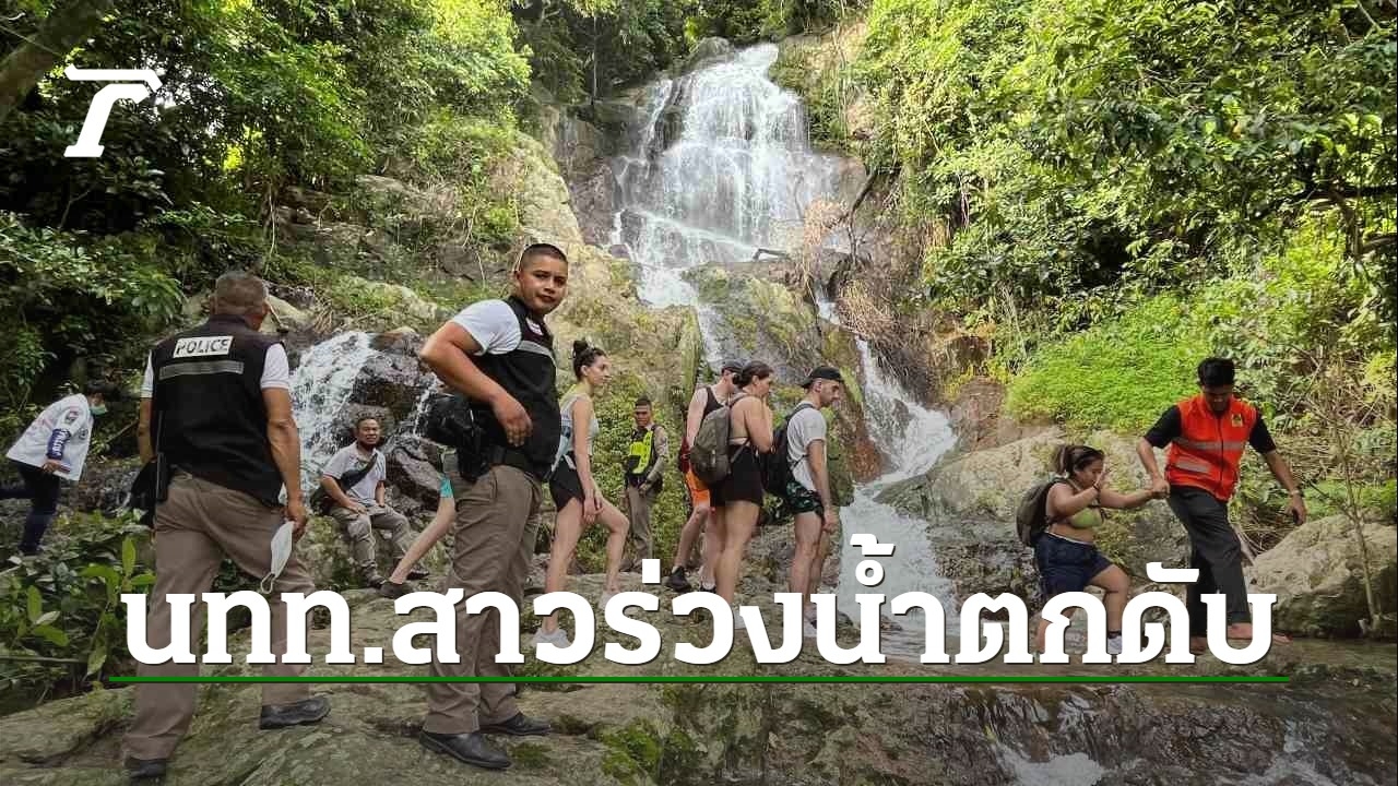นักท่องเที่ยวสาวชาวโรมาเนีย พลัดตกจากชั้น 4 ของหน้าผาน้ำตกหน้าเมือง 2 บนเกาะสมุยเสียชีวิต เพื่อนพยายามซีพีอาร์ช่วยแต่ไม่สำเร็จ จนท.กู้ภัย ไปถึงแล้วกำลังนำร่างผู้ตายลงมาจากเขา