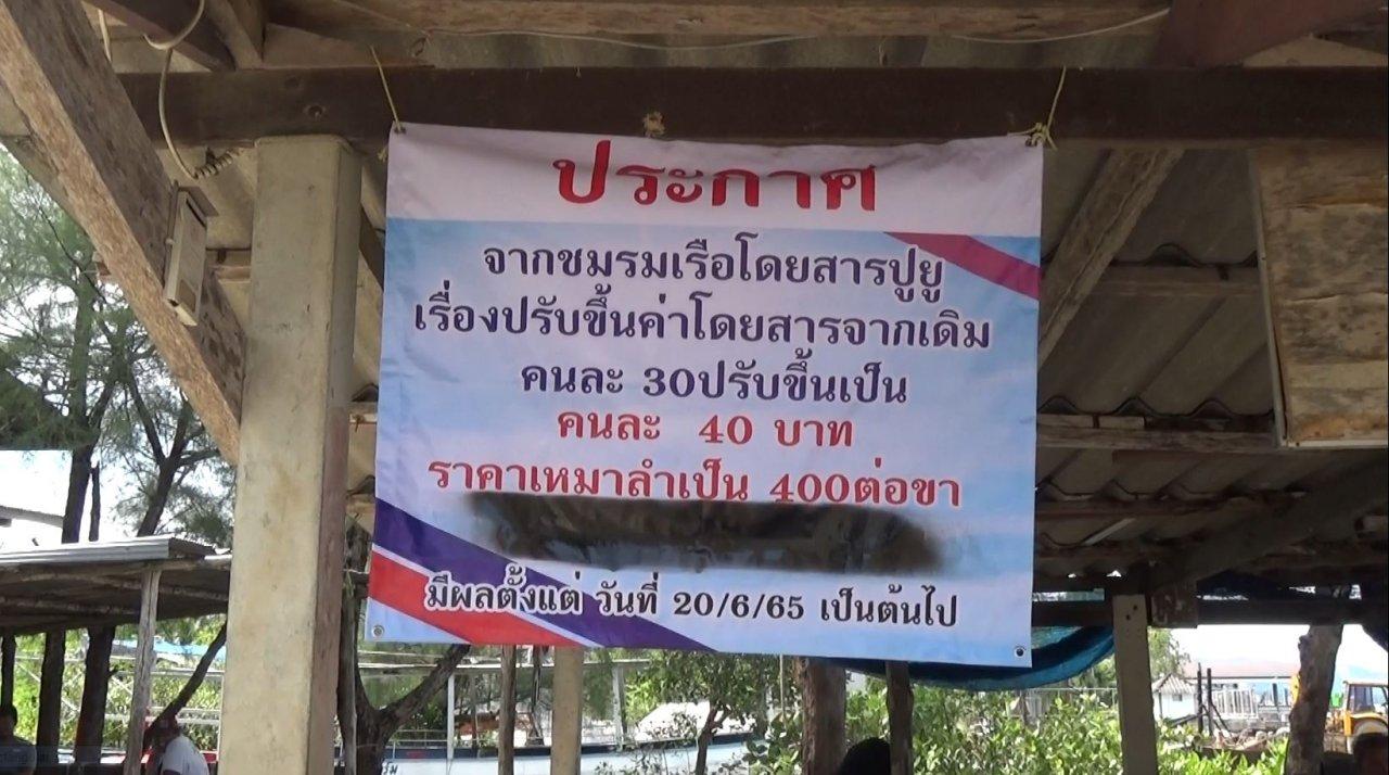 นายบังหนี และเพื่อนที่ขับเรือรับจ้าง กล่าวว่าตนขับเรือมาตั้งแต่ค่าโดยสารอยู่ที่ราคาคนละ 20 บาท จากนั้นปรับขึ้นเป็น 30 บาทมานานกว่า 30 ปีแล้ว จนกระทั่งปีนี้ เรือโดยสารจากทุกแห่งไม่ว่าจะเป็นเรือโดยสารวิ่งเส้นทางเกาะสาหร่าย เส้นทางบ้านเกาะยาว และเรือที่วิ่งตามเกาะต่างๆ ปรับขึ้นราคากันหมดแล้ว และพวกตนเองก็อยู่ไม่ได้แล้วจึงขอปรับขึ้นคนละ 10 บาท เรือโดยสารแต่ละเที่ยวรับคนได้อย่างน้อย 10 คนจึงจะออกจากท่าได้ โดยเราปรับขึ้นตั้งแต่วันที่ 20 มิ.ย. 65 จากคนละ 30 บาทเป็นคนละ 40 บาท เรือเหมาจากลำละ 300 บาทเป็น 400 บาท
