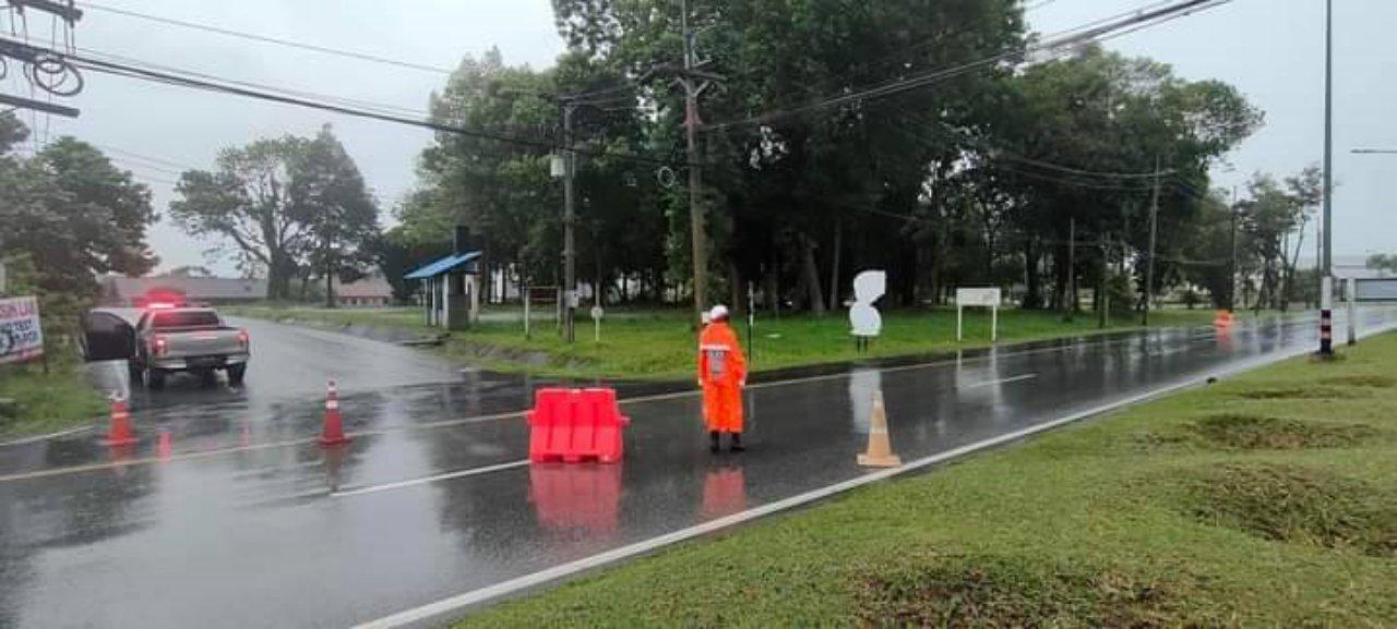 ต่อมาเมื่อเวลา 14.10 น. เจ้าหน้าที่ตำรวจสภ.ท่าฉัตรไชยได้ปิดถนนทางไปหาดทรายแก้ว ต.ไม้ขาว อ.ถลาง จ.ภูเก็ต เนื่องจากน้ำทะเลหนุน คลื่นลมแรง น้ำทะเลเริ่มล้นขอบถนน ทางออกตัวเมืองภูเก็ตก่อนข้ามสะพานไปยังจังหวัดพังงาแล้ว และให้ผู้ใช้รถใช้ถนนเปลี่ยนไปใช้ถนนเทพกระษัตรีแทนเป็นการชั่วคราว (สวนเลน) เพื่อหลีกเลี่ยงการใช้เส้นทางหาดทรายแก้ว และเมื่อสถานการณ์เข้าสู่ภาวะปกติ จะเปิดเส้นทางจราจรสายหาดทรายแก้วต่อไป