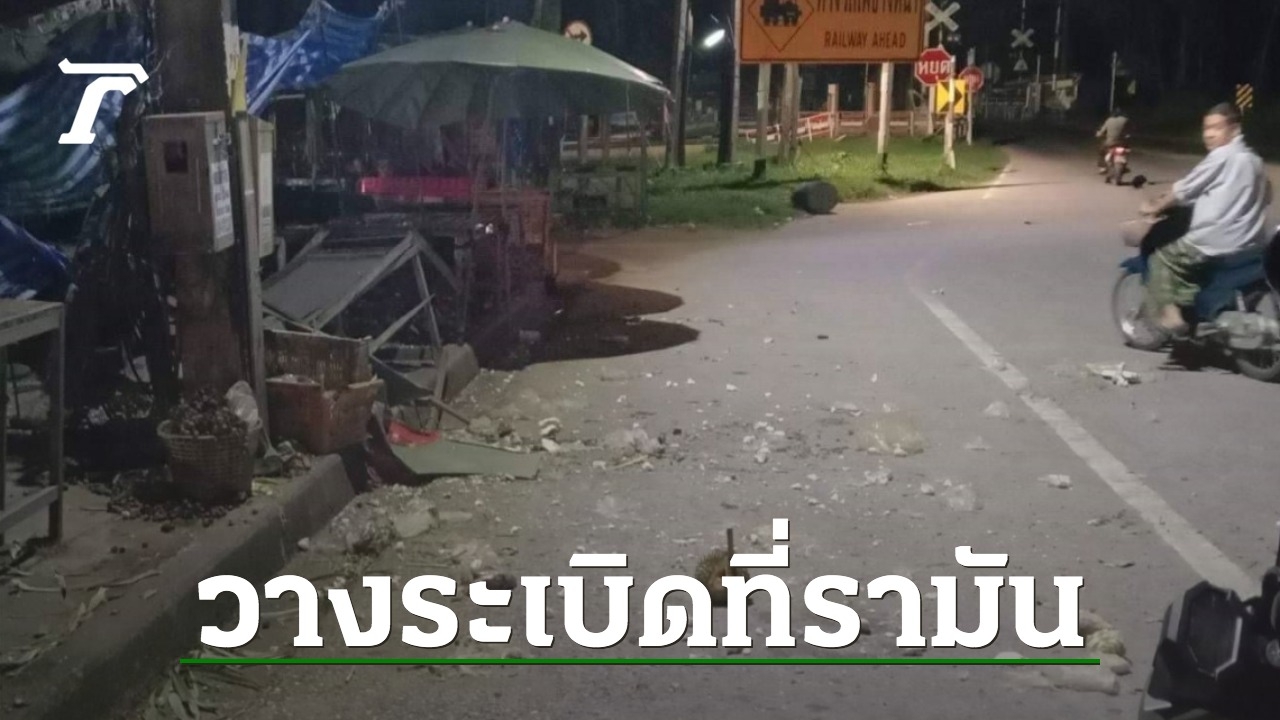 คนร้ายป่วนไม่เลิก ลอบวางระเบิดแผงขายของ ใกล้สถานีรถไฟ อ.รามัน จ.ยะลา ได้รับความเสียหาย แต่ไม่มีผู้ใดได้รับบาดเจ็บหรือเสียชีวิต เหตุเกิดพื้นที่ใกล้เคียงกับเหตุยิงปะทะและคนร้ายตาย 2 ศพ เมื่อวันที่ผ่านมา สั่งคุ้มครองเฝ้าระวังชุมชนไทยพุทธช่วงใกล้ช่วงใกล้วันรายอฮัจยี