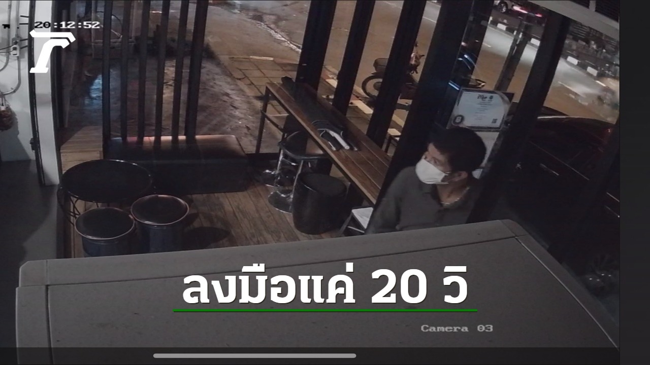โจรหนุ่มใช้เวลา 20 วินาที บุกเข้าร้านกาแฟใจกลางเมือง หยิบทรัพย์สินก่อนวิ่งขึ้น จยย.เผ่นหนีไป พบผู้เสียหายเป็นคนสนิทน้องชายนายชวน หลีกภัย ตร.วิทยุสกัดจับทั่วเมืองแต่ยังไร้วี่แวว