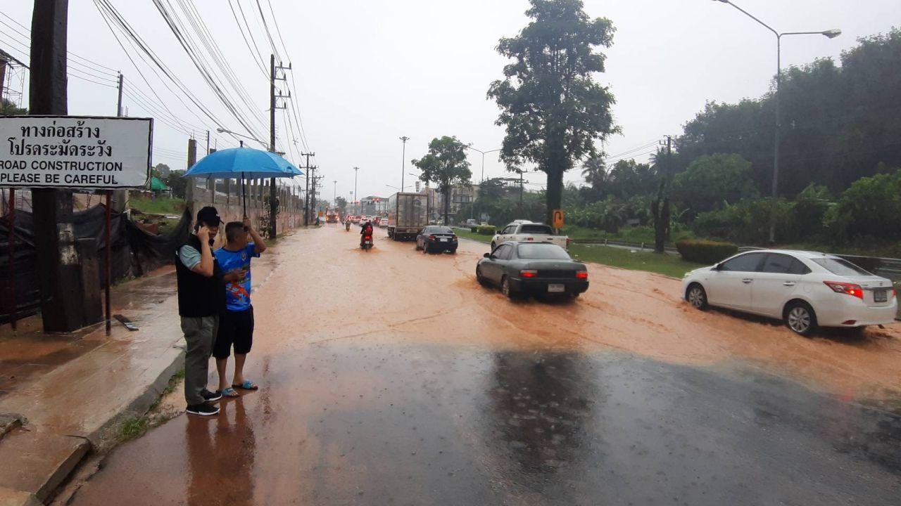 ภูเก็ตฝนตกหนัก ส่งผลให้น้ำฝนมีปริมาณมาก ระบายไม่ทันและมีน้ำท่วมขังเป็นบางพื้นที่ โดยเฉพาะที่หน้า สวท.ภูเก็ต และ มรภ.ภูเก็ต โดยอยู่ระหว่างเร่งระบายน้ำออก ขณะที่ถนนหลายเส้นก็มีน้ำท่วม