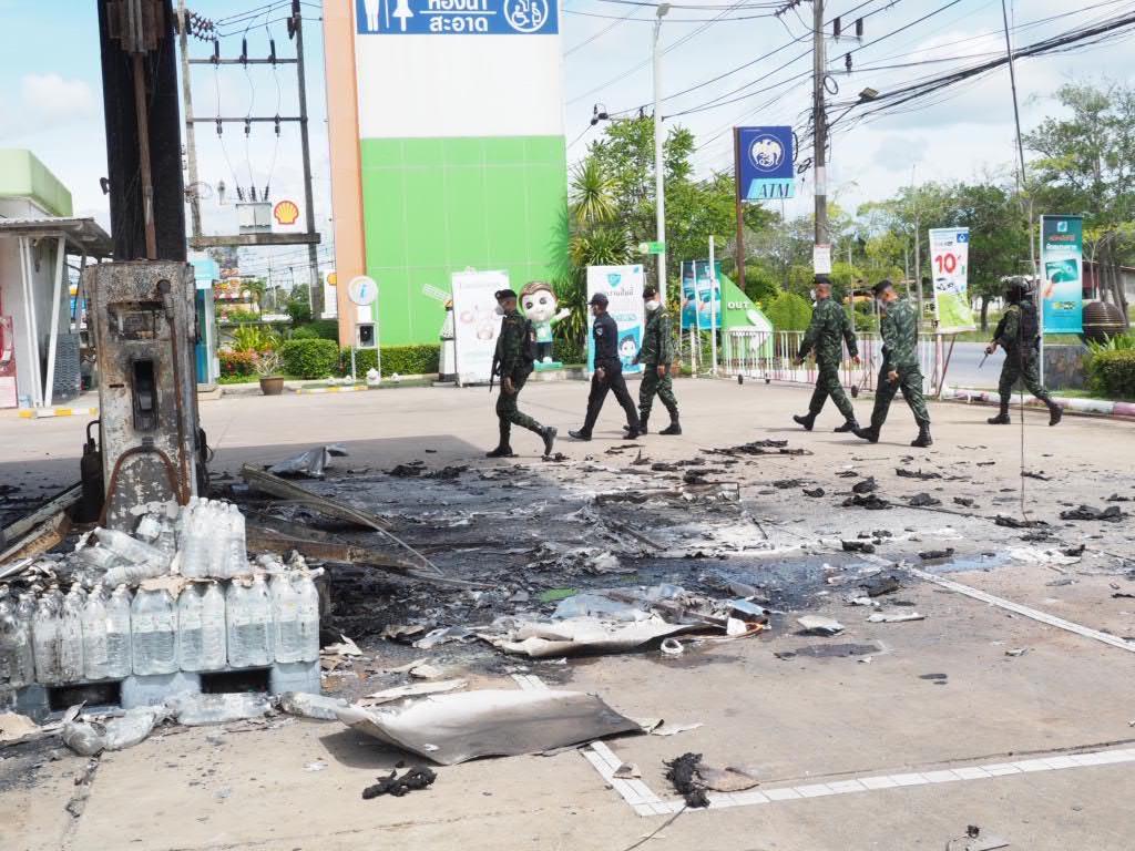 เมื่อวันที่ 17 ส.ค. 65 พล.ต.คมกฤช รัตนฉายา ผบ.ฉก.ปัตตานี พร้อมด้วย พ.อ.เอกคง รัตนบุรี เสธ.ฉก.ปัตตานี ลงพื้นที่ตรวจสอบจุดเกิดเหตุ ณ ปั๊มน้ำมันบางจาก เลขที่ 200/1 บ้านดอนยาง หมู่ที่ 8 ตำบลบ่อทอง (บริเวณริมถนนสายปัตตานี-หาดใหญ่) อำเภอหนองจิก จังหวัดปัตตานี และ บิ๊กซีมินิ บ้านนัดฆอมิส หมู่ที่ 5 ตำบลน้ำดำ อำเภอทุ่งยางแดง จังหวัดปัตตานี เป็นเหตุให้ปั๊มน้ำมัน ร้านสะดวกซื้อ และทรัพย์สินได้รับความเสียหายเป็นจำนวนมาก