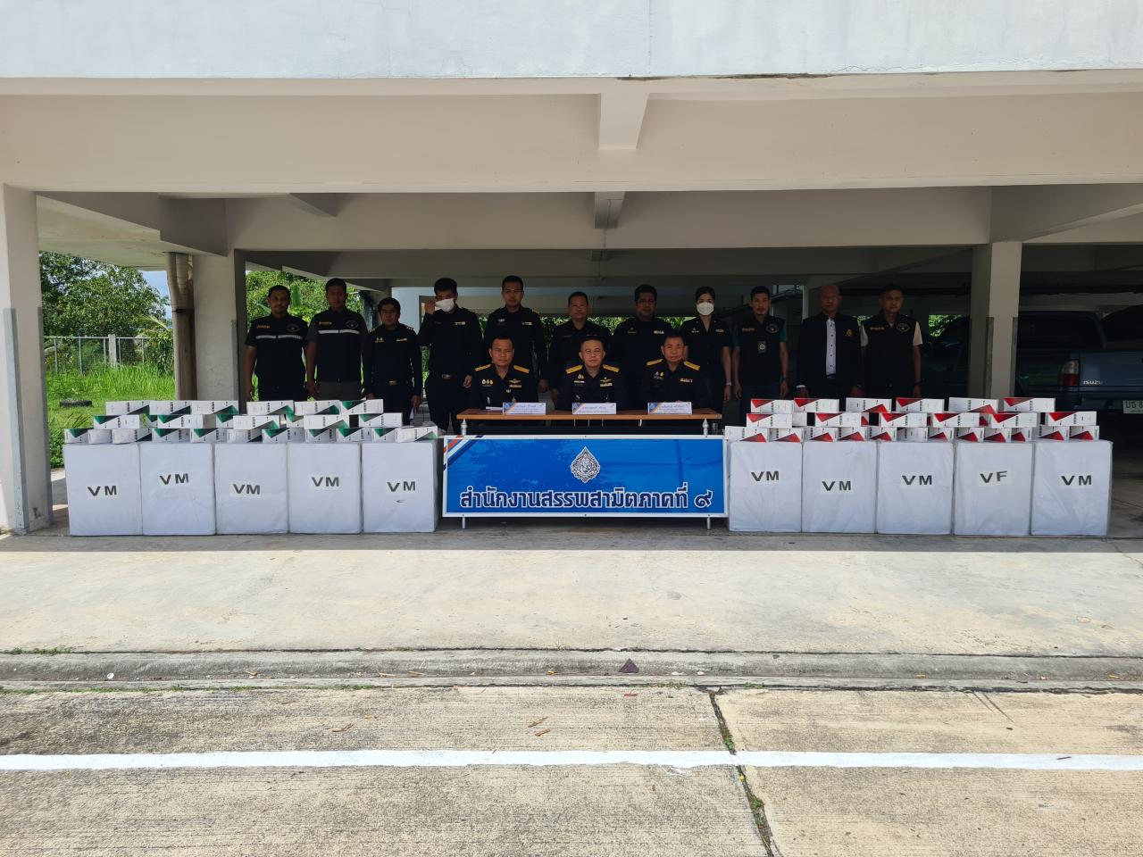เมื่อวันที่ 18 ก.ย.65 ที่สำนักงานสรรพสามิตภาคที่ 9 อ.หาดใหญ่ จ.สงขลา เจ้าหน้าที่ภายใต้การอำนวยการของ นายเอกนิติ นิติทัณฑ์ประภาศ อธิบดีกรมสรรสามิต นายวิวัฒน์ เขาสกุล ที่ปรึกษาด้านยุทธศาสตร์ภาษีสรรพสามิต นายภาณุพงศ์ ศรีเกตุ ผู้อำนวยการสำนักงานสรรพสามิตภาคที่ 9 พล.ต.ท.จักรภพ ภูริเดช ผบช.ก. นายจีระนันท์ ใจห้าว สรรพสามิตพื้นที่นราธิวาส นายอติสันติ์ ภูวพิพัฒนวงศ์ นายด่านศุลกากรตากใบ นายจำแลง บัวสงค์ นักวิชาการสรรพสามิตชำนาญการพิเศษ รักษาการในตำแหน่งผู้เชี่ยวชาญด้านการจัดเก็บภาษีสรรพสามิต นายสัมพันธ์ ศรีวิรัตน์ นักวิชาการสรรพสามิตชำนาญการพิเศษ รักษาการในตำแหน่าง ผอ.ส่วนตรวจสอบ ป้องกันและปราบปรามสำนักงานสำนักงานสรรพสามิตภาคที่ 9 นางสาวประอรรัตน์ รัตนพรสมปอง นักวิชาการศุลกากรชำนาญการพิเศษ และนายชัยวิทย์ ชัยวิรัตน์นุกูล นักวิชาการศุลกากรชำนาญการ แถลงผลการจับกุมบุหรี่เถื่อนลอตใหญ่ ซึ่งเป็นบุหรี่ที่ยังไม่เสียภาษี จำนวน 351,500 ซอง รวม 7,030,000 มวล มูลค่าประมาณ 7 ล้านบาท คิดเป็นค่าปรับประมาณ 331 ล้านบาท และค่าภาษีประมาณ 22 ล้าน