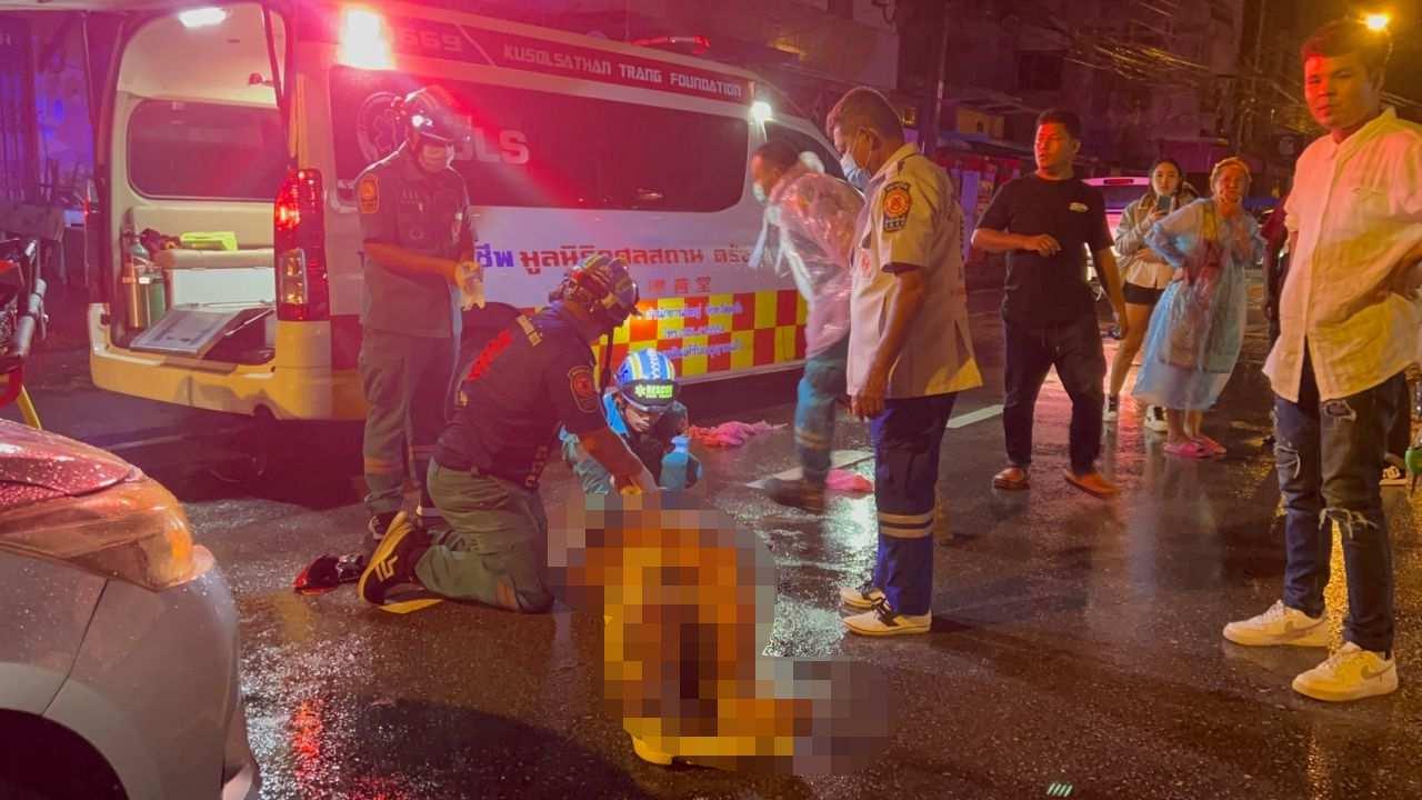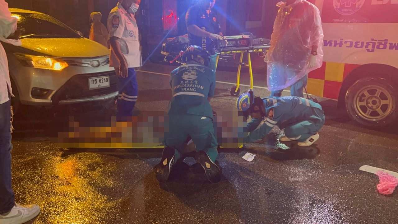 กรณีเกิดอุบัติเหตุ รถอเนกประสงค์หรือเอสยูวี พุ่งชนท้ายรถ จยย.ยี่ห้อฮอนด้า เวฟ 110 สีเขียว ทะเบียน กรก 902 ตรัง ทำให้คนขับคือนายสุเทพ ฝุกล่อย หรือโกอิ้น อายุ 59 ปี พ่อครัวโรงทานศาลเจ้าพ่อหมื่นราม พุ่งกระเด็นมานอนกลางถนน ส่วนคนซ้อนท้ายคือนายอรุณ ศรีสุข หรือลุฟ อายุ 59 ปี หัวหน้าพ่อครัวศาลเจ้าพ่อหมื่นราม ได้รับบาดเจ็บ ทำให้รถเก๋ง ยี่ห้อโตโยต้า รุ่นวีออส สีบรอนซ์เงิน ทะเบียน กธ 6249 ตรัง ที่ขับสวนมาอีกเลนพุ่งชนร่างนายสุเทพเสียชีวิต ส่วนคันที่พุ่งชนคันแรกได้ขับหลบหนีไป เหตุเกิดเมื่อเวลาประมาณ 02.30 น. วันที่ 1 ต.ค. 65 ที่ผ่านมา บนถนนรัษฎา ต.ทับเที่ยง อ.เมืองตรัง จ.ตรัง ตามที่นำเสนอข่าวไปแล้วนั้น
