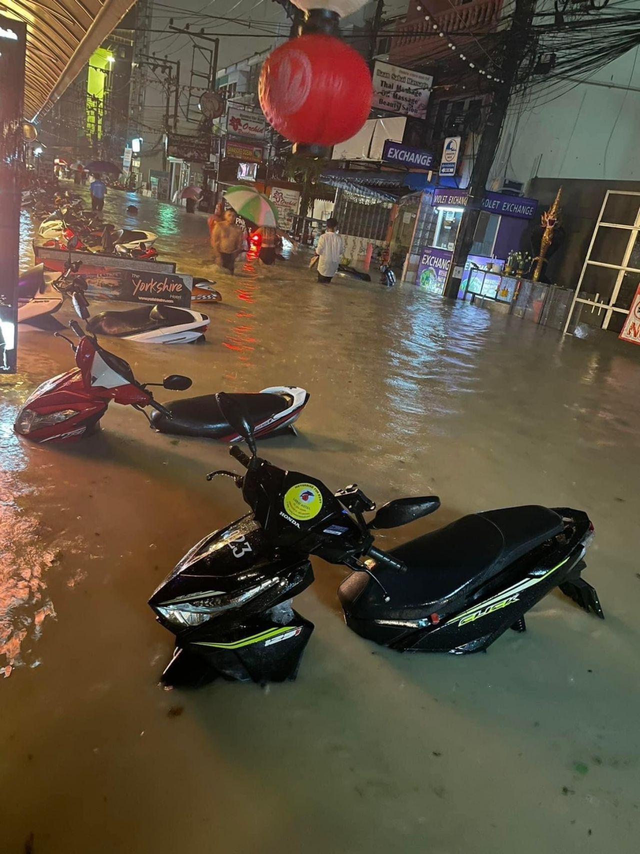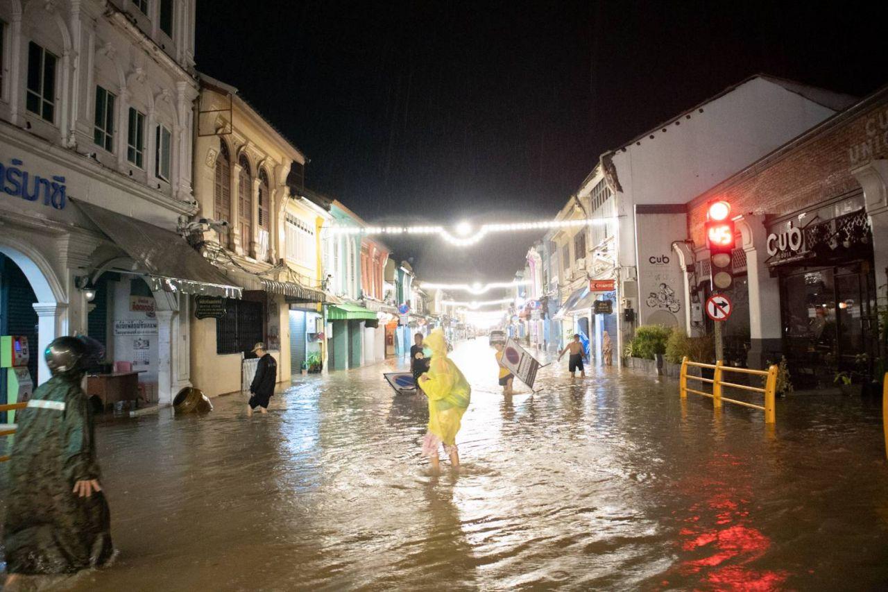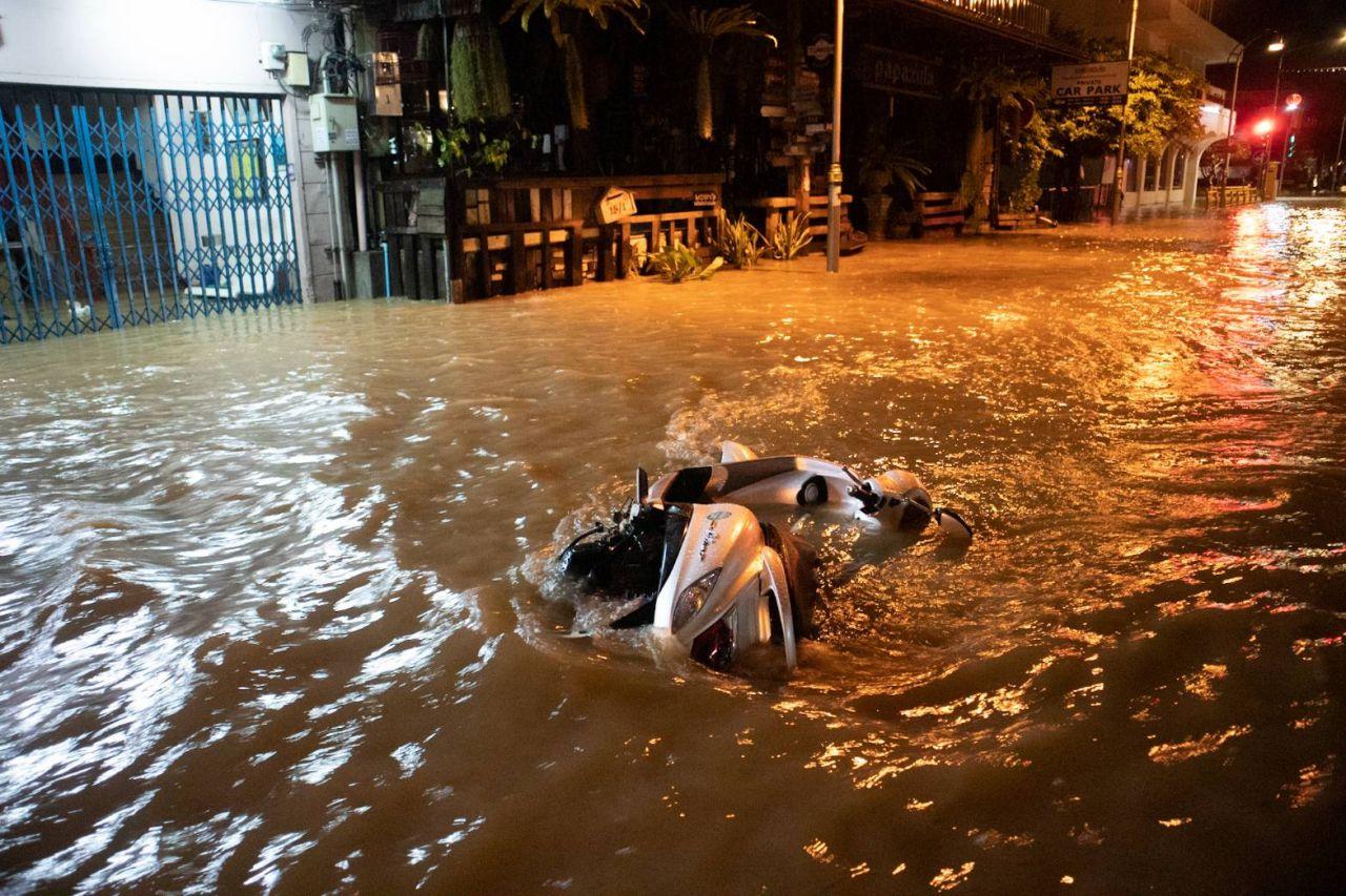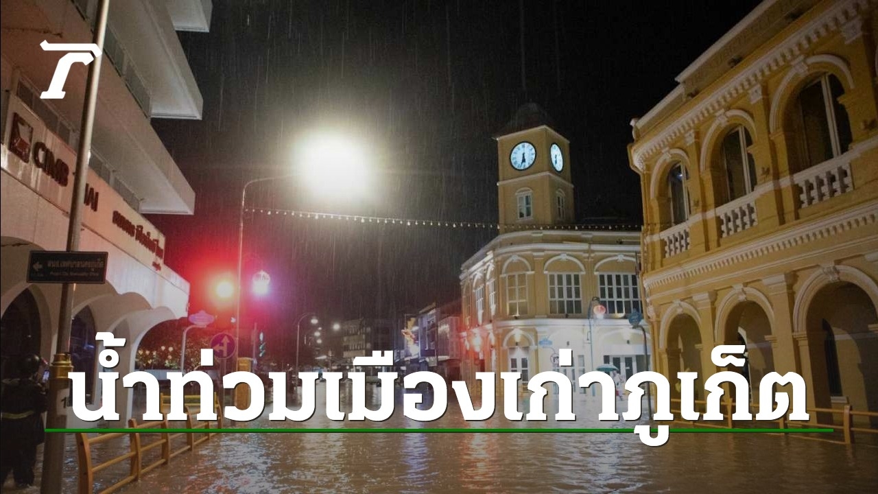 แลนด์มาร์กเมืองเก่าของภูเก็ตอ่วม หลังฝนเททั้งคืน คลองบางใหญ่ล้นตลิ่งทำน้ำเอ่อท่วมกลางเมืองบางจุดสูง 1 เมตร ส่วนป่าตองไม่ต่างกันจมบาดาล รถยนต์และ จยย.ที่จอดริมถนนโดนท่วมได้รับความเสียหาย