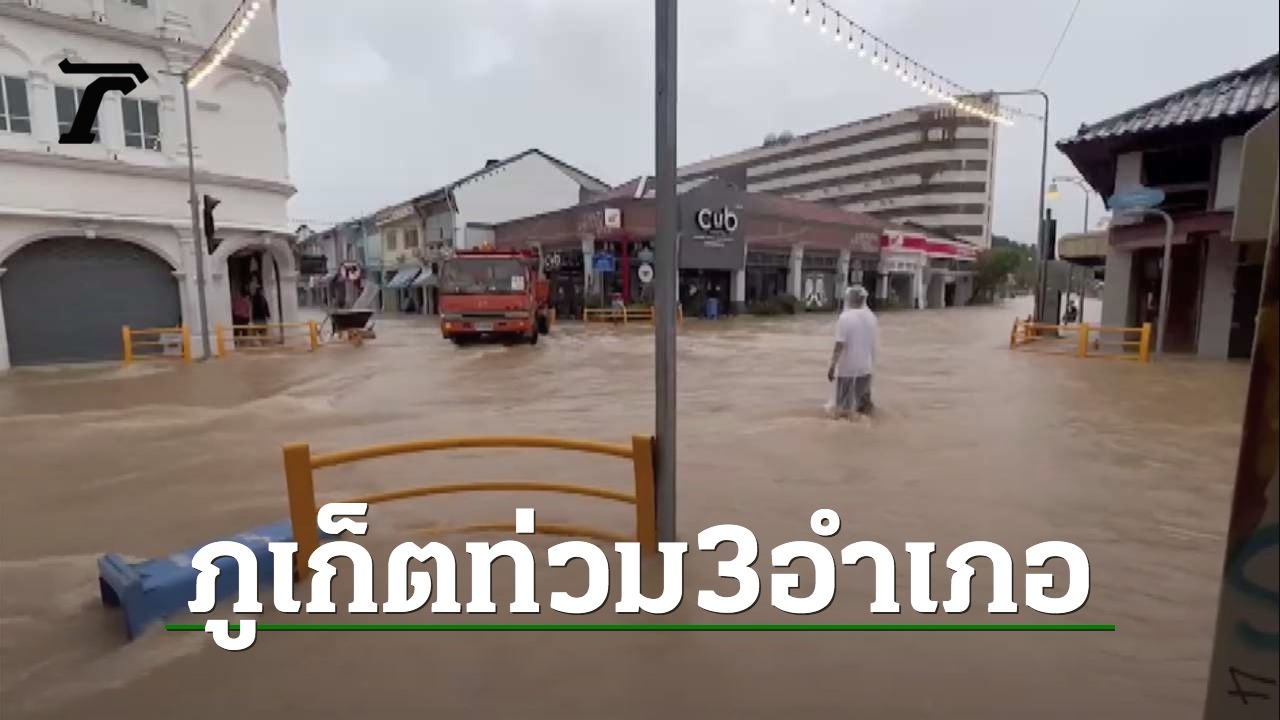 และ 3.อำเภอเมืองภูเก็ต (ได้รับผลกระทบ 6 ชุมชน/หมู่บ้าน) ซอยพะเนียง 5 ตำบลรัษฎา เกิดน้ำเอ่อล้นขุมเหมือง ท่วมขังบ้านเรือนประชาชน ชุมชนสะพานร่วม 1 เขตเทศบาลนครภูเก็ต เกิดน้ำท่วมขังบ้านเรือนประชาชน ชุมชนย่านเมืองเก่าภูเก็ต ถนนถลาง เขตเทศบาลนครภูเก็ต เกิดน้ำท่วมขังถนนและบ้านเรือนประชาชน หมู่ที่ 6 หน้าปั๊ม ปตท.รัษฎาแก๊ส ตำบลรัษฎา เกิดน้ำท่วมขังเส้นทางจราจร ชุมชนสามกอง อำเภอเมืองภูเก็ตเกิดน้ำท่วมขังเส้นทางจราจร หมู่ที่ 3 บ้านกู้กู ตำบลรัษฎา บริเวณถนนร่วมพัฒนา ทางไปศาลากลางจังหวัดภูเก็ตหลังเก่า เกิดดินสไลด์ขวางถนน