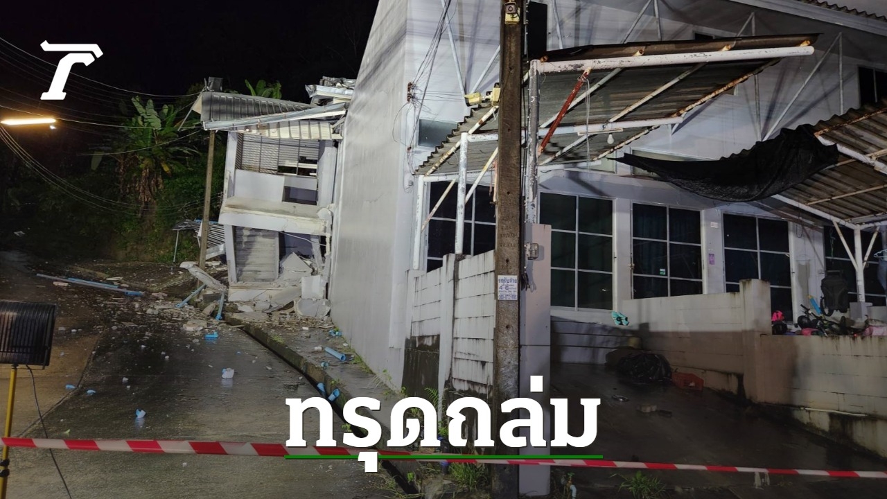 ระทึก ฝนตกหนัก ดินสไลด์อาคาร 2 ชั้น-ทรุดถล่ม โชคดีผู้อาศัยไหวตัวทันขนข้าวของอพยพออกไปก่อน ตรวจสอบพบปูนแตก-รอยร้าวเพียบ