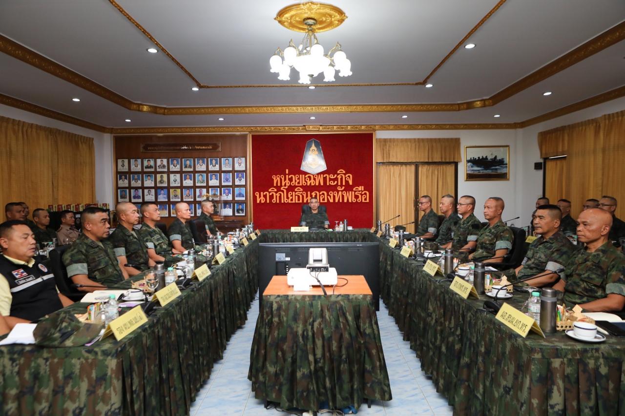 จากนั้น ผู้บัญชาการทหารเรือ ได้เข้ารับการบรรยายสรุป เพื่อรับทราบถึงผลการปฏิบัติ ปัญหา อุปสรรค ข้อขัดข้องต่างๆ ในการปฏิบัติงาน ทั้งนี้ หน่วยเฉพาะกิจนาวิกโยธินกองทัพเรือ มีภารกิจและหน้าที่รับผิดชอบ ในการบูรณาการแก้ไขปัญหา การป้องกันและเสริมสร้างความมั่นคงในพื้นที่อำเภอเมืองนราธิวาส อำเภอยี่งอ อำเภอบาเจาะ จังหวัดนราธิวาส ตลอดจนส่งเสริมและสนับสนุนงานโครงการอันเนื่องมาจากพระราชดำริ เสริมสร้างความเข้มแข็งให้กับเจ้าหน้าที่และอาสาสมัครประจำพื้นที่ เพื่อรักษาความปลอดภัยทั้งในชีวิตและทรัพย์สิน พัฒนายกระดับคุณภาพชีวิตของประชาชนให้ดีขึ้น และนำพาสันติสุขกลับสู่จังหวัดชายแดนภาคใต้อย่างยั่งยืนภายใต้บริบทของสังคมพหุวัฒนธรรม.