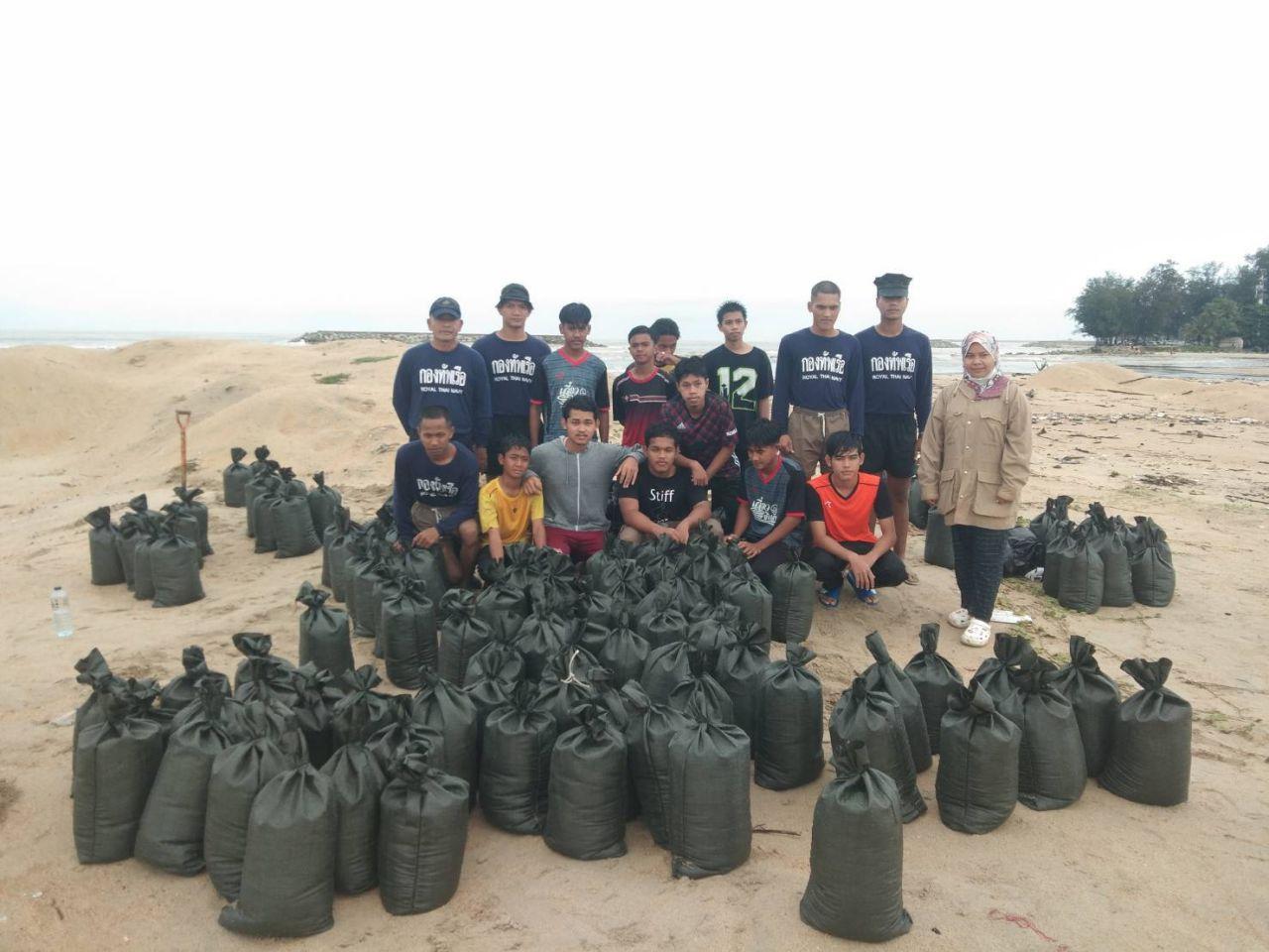 นาวิกโยธินร่วมกับชาวบ้านกรอกกระสอบทรายเตรียมไว้ป้องกันน้ำท่วมโรงเรียนนราวิทย์อิสลามวิทยา ขณะที่ จ.นราธิวาส น้ำท่วมรวมเป็น 10 อำเภอ กระทบกว่า 6.5 พันครัวเรือน เริ่มคลี่คลายลงแล้วในบางพื้นที่