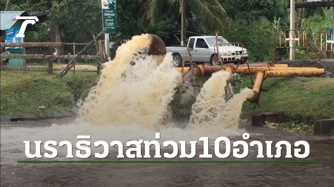 สำหรับพื้นที่ที่ได้รับผลกระทบน้ำท่วมนราธิวาสรวมเป็น 10 อำเภอ ประกอบด้วย อ.เมืองนราธิวาส, อ.บาเจาะ, อ.ยี่งอ, อ.รือเสาะ, อ.เจาะไอร้อง, อ.สุไหงปาดี, อ.ระแงะ, อ.สุไหงโก-ลก, อ.ตากใบ และ อ.ศรีสาคร รวมทั้งหมด 42 ตำบล, 191 หมู่บ้าน, 7 ชุมชน มีผู้ได้รับผลกระทบจำนวน 6,589 ครัวเรือน รวม 26,678 คน โดยอำเภอบาเจาะได้รับผลกระทบมากที่สุด จำนวน 1,525 ครัวเรือน รวม 5,648 คน ซึ่งสถานการณ์เริ่มคลี่คลายลงบ้างแล้ว ในขณะที่อีก 3 อำเภอคือ อ.จะแนะ, อ.สุคิริน และ อ.แว้ง อยู่ระหว่างการสำรวจ.