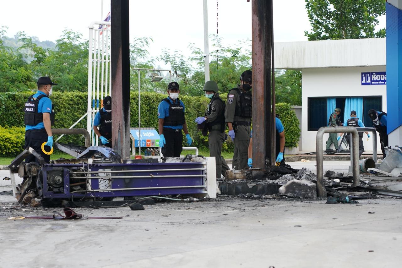 สำหรับระเบิดที่คนร้ายนำมาก่อเหตุในครั้งนี้เป็นระเบิดแสวงเครื่อง น้ำหนักประมาณ 5 กก.บรรจุในถังแก๊สปิกนิก สีส้ม ใช้การจุดชนวนด้วยระบบการตั้งเวลา IC Timer จำนวน 2 ลูก เระเบิดทำงาน 1 ลูก ในช่วงเวลา 23.45 น. ของวันที่ 24 ธ.ค.65 ส่วนระเบิดอีกลูก อยู่ใกล้กัน ไม่ทำงาน เจ้าหน้าที่ใช้หุ่นยนต์เก็บกู้ยิงทำลาย