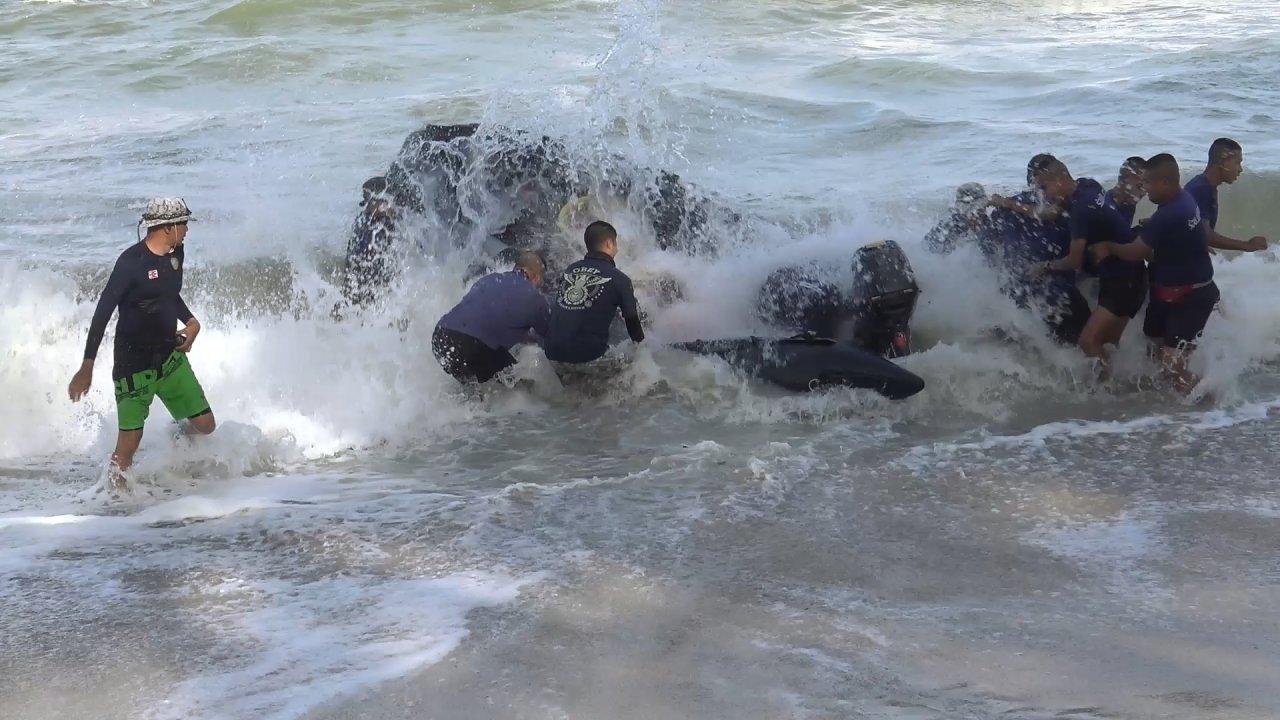หลังเจ้าหน้าที่กู้ภัยมาถึงได้พยายามลงไปดำน้ำเพื่อหาร่าง น้องเปรี้ยวหวานวัย 10 ขวบ กู้ภัยเผยว่าจุดที่เด็กจมน้ำเป็นแอ่งกระทะ และบวกกับมีคลื่นสูง 1-2 เมตร ซัดแรงมาก เป็นอุปสรรคต่อการค้นหา เจ้าหน้าที่ประดาน้ำกู้ภัยพยายามค้นอยู่ประมาณ 5 ชั่วโมงแต่ก็ยังไม่พบ จึงให้ชุดประดาน้ำถอนกำลังขึ้นจากทะเล ทั้งนี้ เจ้าหน้าที่กู้ภัยสว่างรวมใจเมืองสงขลาจะเฝ้ารอริมชายหาด และพยายามเดินหาร่างหนูน้อยตลอดทั้งคืนนี้ นอกจากนี้ เจ้าหน้าที่ทหารเรือได้นำเรือยางและชุดประดาน้ำของทหารเรือมาร่วมค้นหาด้วย