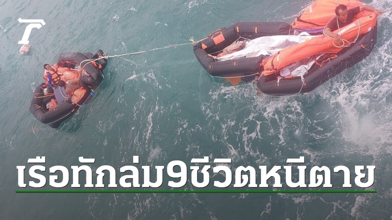 เรือทักลากจูงถูกคลื่นยักษ์ซัดเข้าใส่ลำเรือกลางอ่าวไทย น้ำทะลักเข้าเรือจนจม 9 ลูกเรือลงเรือชูชีพหนีตายลอยกลางทะเล โชคดีมีเรือน้ำมันพบเข้า จึงช่วยไว้ได้ทั้งหมด พร้อมส่งขึ้นฝั่งเกาะสมุยปลอดภัย