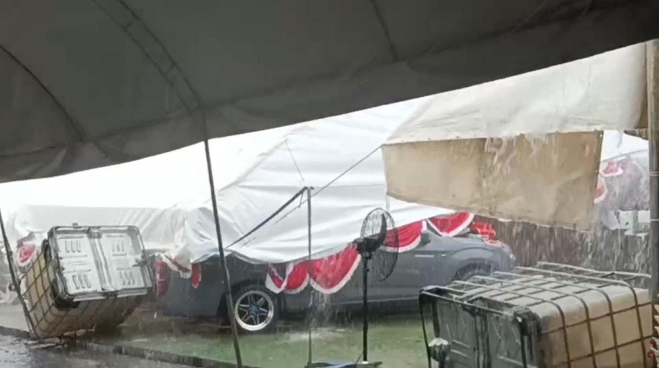 พ่อค้าที่ขายของติดกับร้านกาชาด เล่าให้ฟังว่า ขณะเกิดเหตุตนอยู่ในที่เกิดเหตุซึ่งหลังร้านของตน หลังคาเปิดเล็กน้อย แต่ช่วงจังหวะที่ลมพัดมานั้นทั้งลมทั้งฝนมาเป็นระลอก เฉพาะช่วงที่ยกเต็นท์โดมลอยขึ้นและเทเอียงลงมาตนก็เห็นพอดี ครั้งนี้โชคดีที่ไม่หนักเหมือนปีที่ผ่านมา ซึ่งทางผู้จัดคงเตรียมรับมือไว้แล้ว โดยนำถังน้ำขนาดใหญ่มาผูกติดไว้กับเต็นท์ทุกจุด ทำให้ความเสียหายน้อยกว่าครั้งที่แล้ว ซึ่งครั้งที่แล้วเสียหายมากขณะเดียวกันเหตุการณ์เกิดซ้ำมาในวันที่ 2 ของการจัดงานเหมือนกับปีที่แล้วเช่นกัน