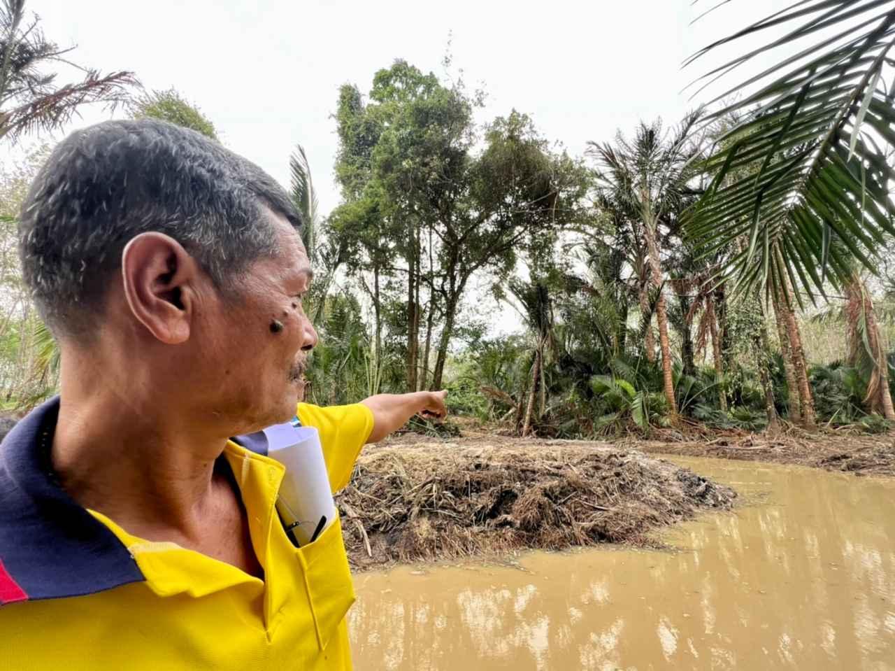 ชาวบ้านได้นำผู้สื่อข่าวไปดูสภาพจากการขุดลอกคลองและก่อสร้างคันคลองปรากฏว่ารถแบ็กโฮ และรถจักรกลได้ขุดนำเอาต้นสาคู ซึ่งเป็นพืชเศรษฐกิจวิถีชุมชนนับหลายพันต้น ที่ขึ้นอยู่ริมลำคลองโค่นล้มเกือบทั้งหมดริมสองฝั่งห่างจากลำคลองไปกว่าข้างละ 15 เมตร ซึ่งมีทั้งต้นเล็กใหญ่ โดยต้นที่สูงประมาณ 15 เมตรก็ได้โค่นลงมาด้วยเช่นกัน มีเหลือให้เห็นเพียงบางส่วนเท่านั้น ก่อนจะนำลำต้นมาทับถมกันเป็นแนวคันคลอง ซึ่งโครงการฯ ได้เริ่มดำเนินการมาตั้งแต่ประมาณเดือน พ.ย. 2565 และคาดว่าจะสิ้นสุดโครงการประมาณเดือน ก.ย. 2566