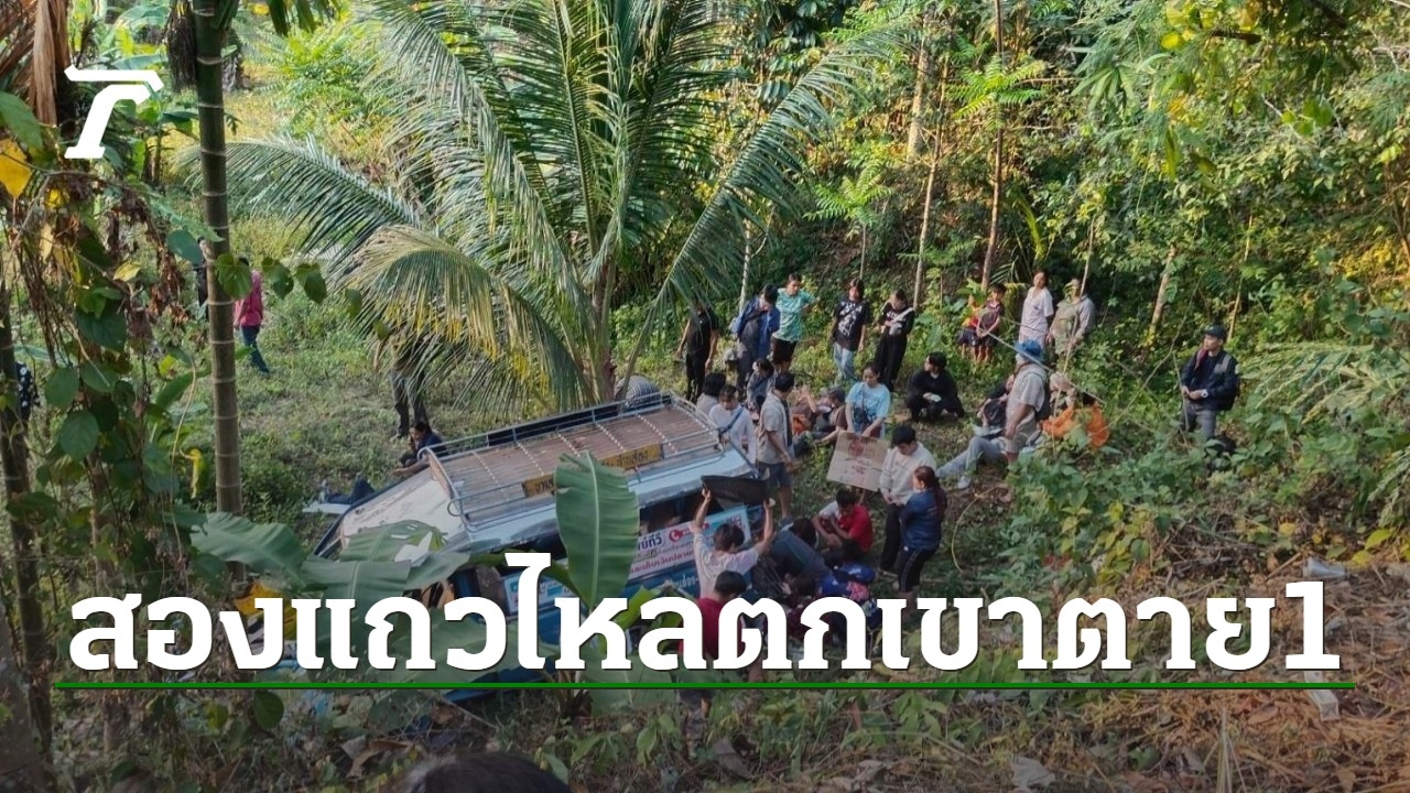 สองแถวรับเหมานำเที่ยว ตกเขาข้างทางขึ้นอุทยานธรรมเขานาในหลวง ม.8 บ้านเขานาใน อ.พนม กู้ภัยสุราษฎร์เร่งช่วย พบบาดเจ็บ 13 ราย รวมคนขับ ตาย 1 ศพ เหตุรถหนักขึ้นเนินไม่ไหว ไหลลงมาก่อนพลิกลงข้างทาง