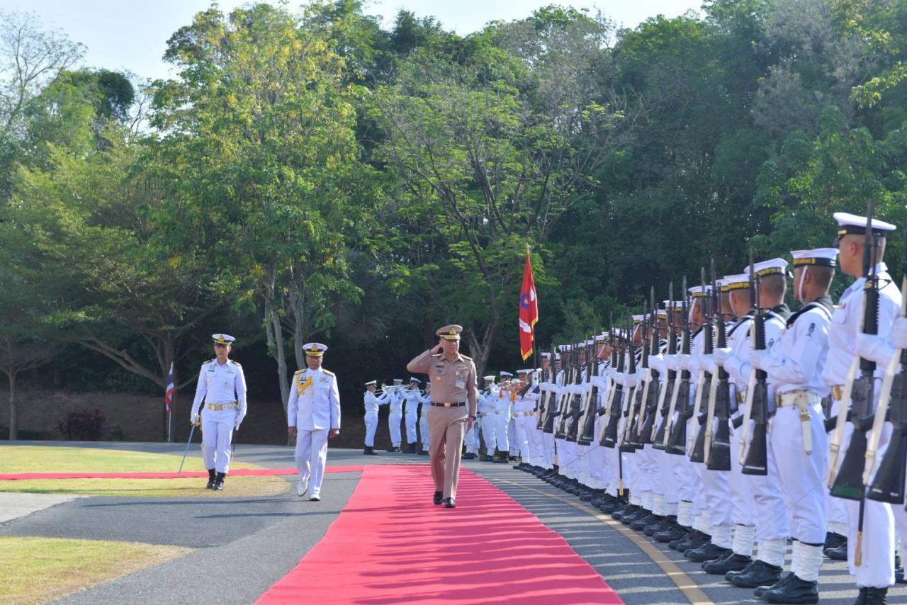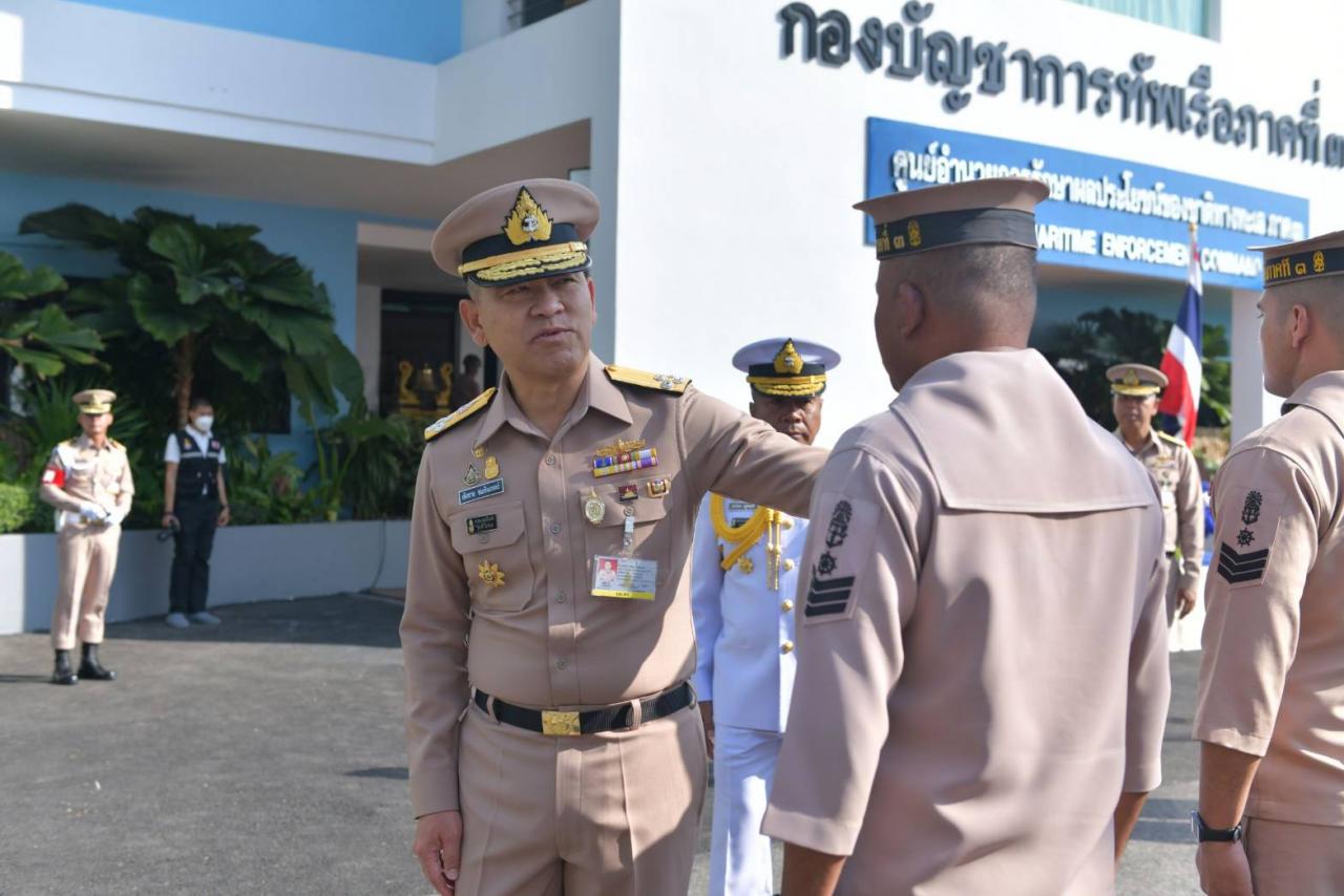 ในการนี้ ผู้บัญชาการทหารเรือ ได้ตรวจแถวกองทหารเกียรติยศ และได้กล่าวให้โอวาทแก่กำลังพลที่ปฏิบัติงานในพื้นที่ โดยเน้นย้ำเรื่องการแก้ไขปัญหาการทำการประมงผิดกฎหมาย และการรักษาทรัพยากรของชาติทางทะเล ซึ่งมีใจความว่า "ผมขอให้กำลังพลทุกนาย ร่วมมือกันเป็นส่วนหนึ่งในการแก้ไขปัญหาการทำการประมงผิดกฎหมาย เพื่อช่วยกันปกป้องและรักษาทรัพยากรทางทะเลด้านการประมงให้มีความมั่นคงและยั่งยืน เพื่อลูกหลานของเราในอนาคต ซึ่งตลอดระยะเวลาที่ผ่านมาได้ปฏิบัติหน้าที่อย่างมีประสิทธิภาพ ผมมีความภาคภูมิใจอย่างยิ่งที่เคยได้เป็นส่วนหนึ่งของหน่วยกำลังรบแห่งนี้ และทราบเป็นอย่างดีถึงความตั้งใจในการปฏิบัติหน้าที่ของข้าราชการในพื้นที่ ซึ่งผมรู้สึกชื่นชม และหวังเป็นอย่างยิ่งว่าท่านทั้งหลายจะให้ร่วมมือกับผมในการปฏิบัติภารกิจของกองทัพเรือ ดำรงไว้ซึ่งเอกราช อธิปไตย ผลประโยชน์ของชาติทางทะเล และการปกครองในระบอบประชาธิปไตย อันมีพระบาทสมเด็จพระเจ้าอยู่หัวเป็นองค์พระประมุข รวมทั้งเตรียมกำลังรบให้มีความพร้อมที่จะรับสถานการณ์ ช่วยเหลือประชาชนได้อย่างทันท่วงทีตลอดเวลา ในส่วนของกองทัพเรือ จะให้ความช่วยเหลือท่าน ด้วยการพัฒนาคุณภาพชีวิต สร้างขวัญและกำลังใจ โดยให้การสนับสนุนด้านสวัสดิการแก่กำลังพลต่อไป"