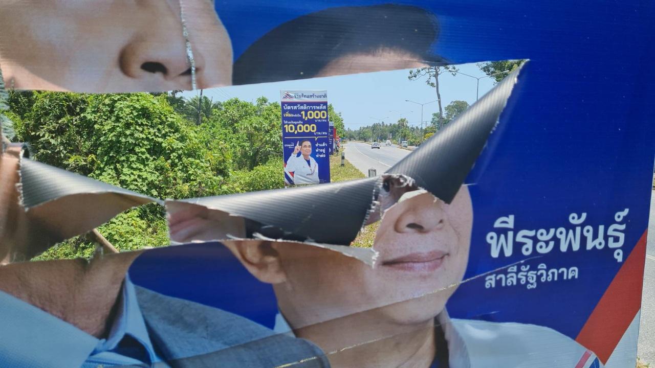 เดินสายกรีดทำลายป้ายผู้สมัครพรรคลุงตู่ ตัวเต็งเขต 10 นครศรีธรรมราช "ส.ส.ปุ้ย" เพิ่งย้ายออกจาก ปชป. เสียหายหลายจุด เชื่อฝีมือคนกลุ่มเดียวกัน วอนเลิกพฤติกรรมใช้อิทธิพลข่มขู่สร้างความหวาดกลัว
