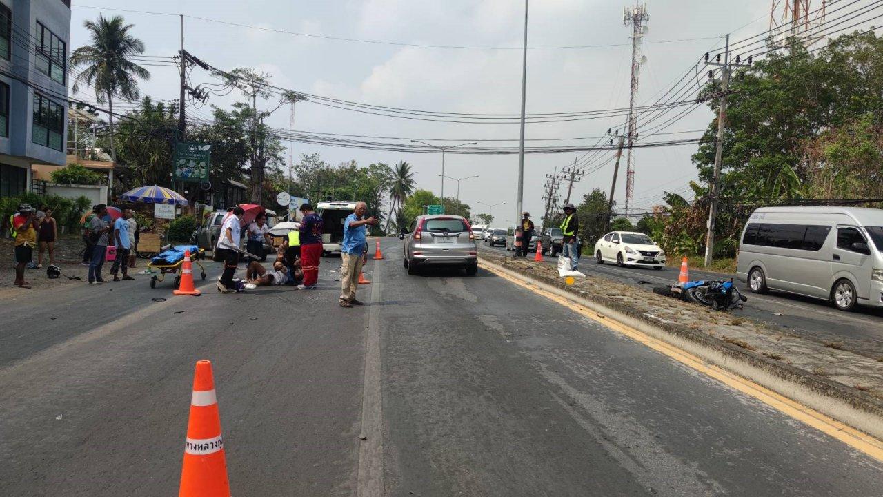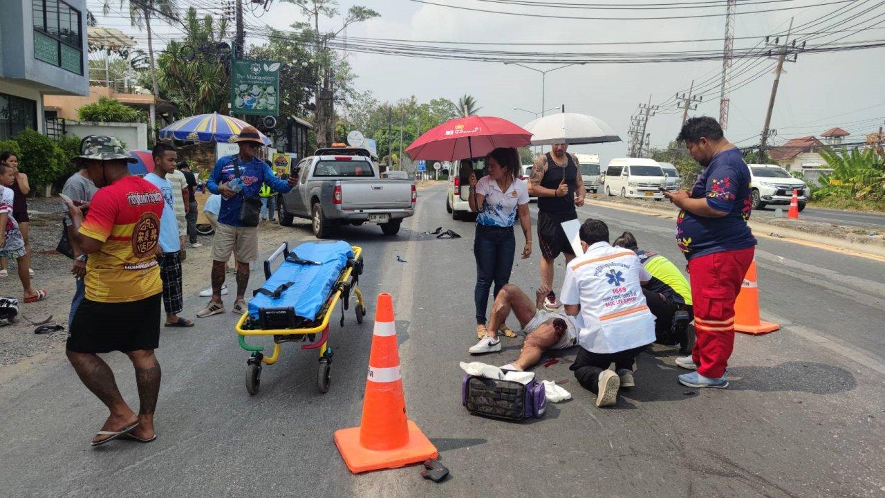 หนุ่มรัสเซียวัย 28 ควบ จยย.เหินข้ามเกาะกลางถนน ร่างกระเด็นฟาดรถกระบะวิ่งสวนมา จนรถคู่กรณียุบไป 1 แถบ บาดเจ็บสาหัส คนขับกระบะก็บาดเจ็บ บนถนนวิเศษ ต.ราไวย์ อ.เมืองภูเก็ต ตร.ดูวงจรปิดหาสาเหตุแล้ว