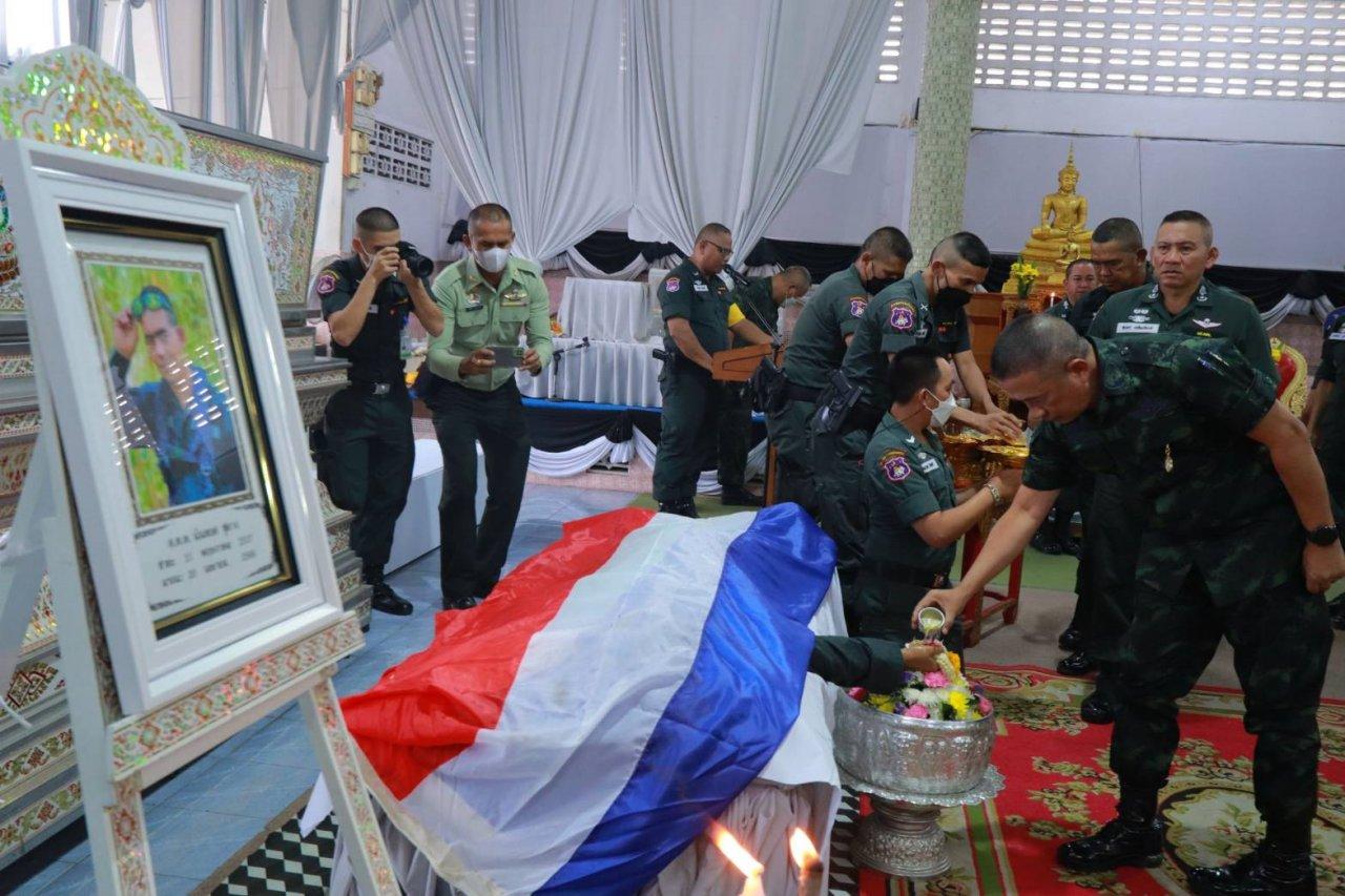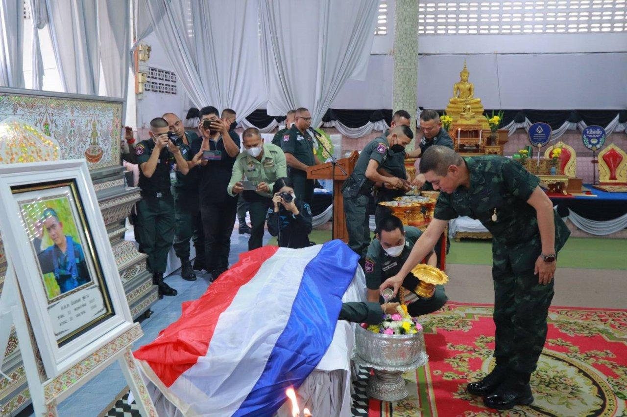แม่ทัพภาค 4 ร่วมพิธีวางหรีดเคารพศพ และรดน้ำศพ ส.ต.ต. ผู้กล้าจังหวัดชายแดนภาคใต้ ที่วัดพุทธภูมิ พระอารามหลวง จ.ยะลา พร้อมมอบเงินช่วยเหลือ ส่วนผู้บาดเจ็บอีกรายยังรักษาที่ รพ.สงขลานครินทร์
