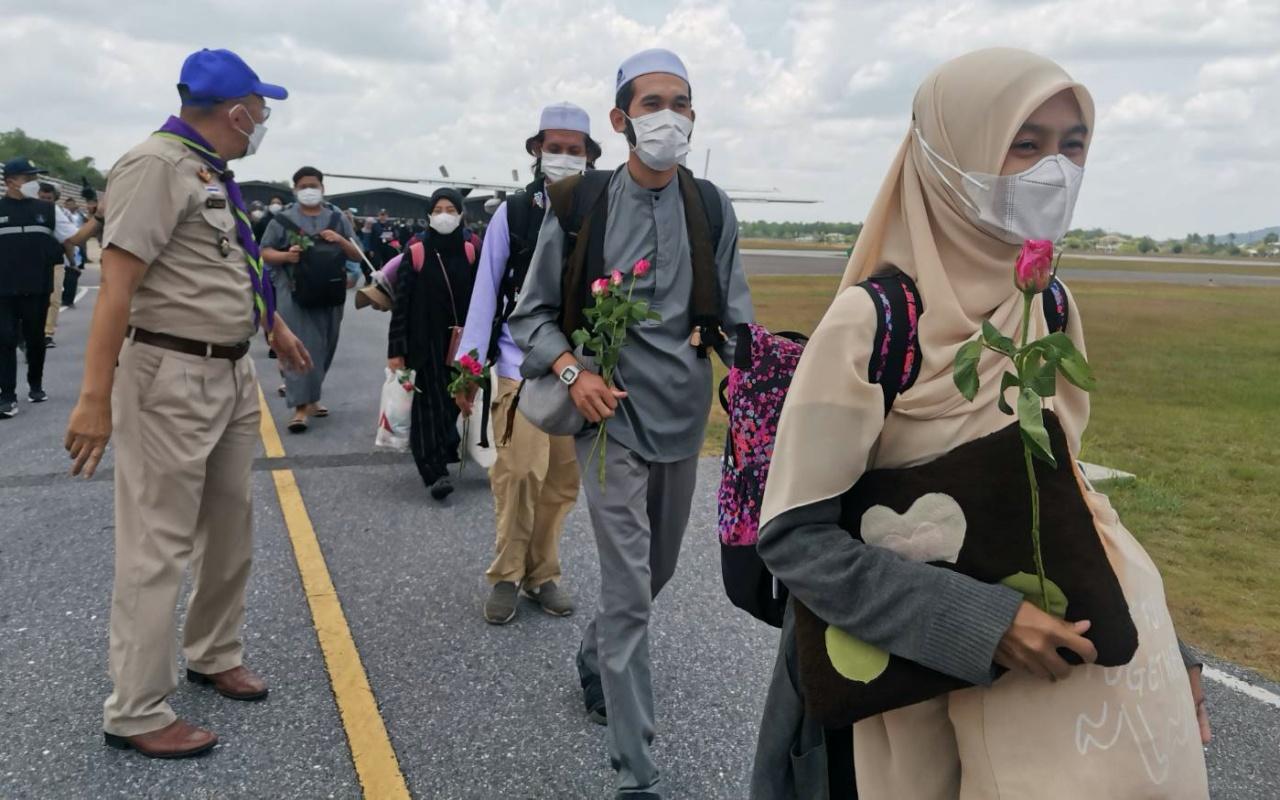 นักศึกษาไทยในซูดาน 62 คน เดินทางถึงสนามบินปัตตานี กอดกันกลมกับคนในครอบครัว ขอบคุณรัฐบาลไทย รัฐบาลซาอุดีอาระเบีย ที่ช่วยพากลับบ้าน