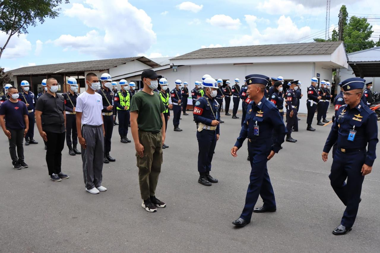 จากนั้น นาวาอากาศเอก ดิษฐพล ชูวงษ์ รองผบ.ดม. พร้อมคณะผู้บังคับบัญชา ลงพื้นที่ตรวจเยี่ยมสายวิทยาการทหารสารวัตร กองร้อยทหารสารวัตร กองบิน 7 โดยมี นาวาอากาศเอก ณัฏฐวุธ ดวงสูงเนิน ผู้บังคับการกองบิน 7 (ผบ.บน.7) ให้การต้อนรับ