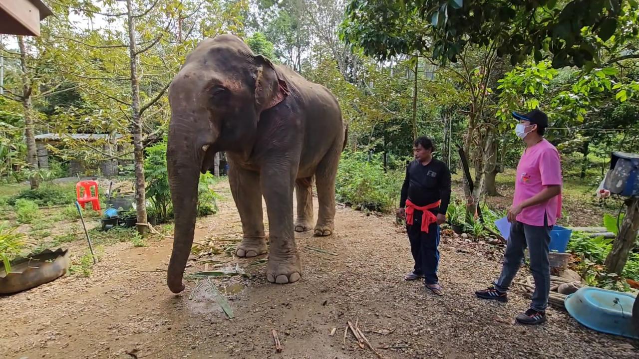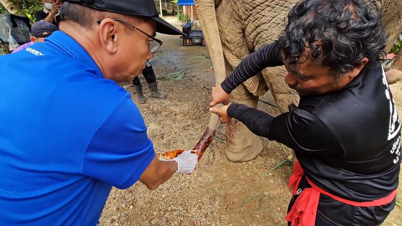 ขณะที่นายสัตวแพทย์พรภิรมย์ ฟุ้งตระกูล ปศุสัตว์จังหวัดนครศรีธรรมราช ระบุว่าสภาพบาดแผลค่อนข้างหนักหนาแต่โชคดีที่เจ้าของช้างช่วยออกมาได้ก่อน ไม่เช่นนั้นอาจถึงตายส่วนการรักษานั้นยังพอแก้ไขบรรเทาไปได้จากสภาพบาดแผลซึ่งต้องระวังเรื่องการติดเชื้อและหนอนแมลงรำคาญ ช้างที่มาทำร้ายเป็นช้างหนุ่มงากำลังน่ากลัว ควาญก็เป็นกังวลอยู่มาก