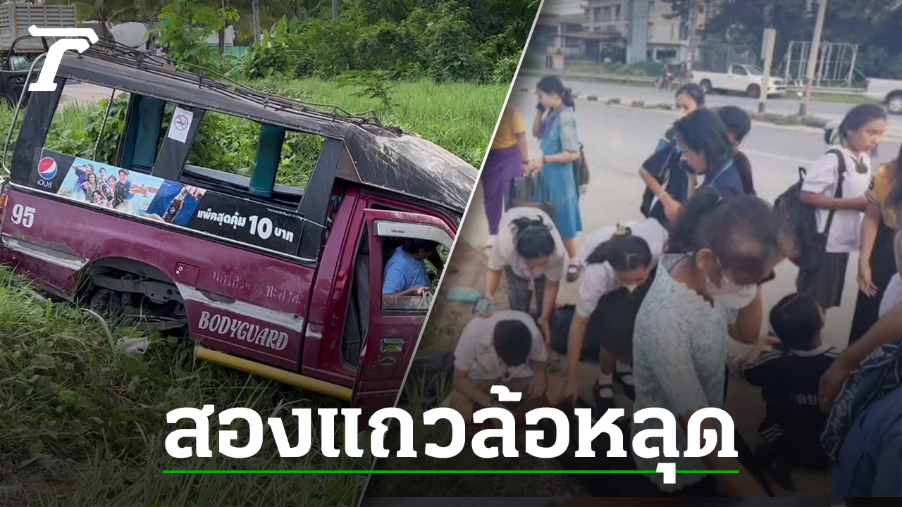 หวิดเกิดโศกนาฏกรรม รถสองแถวที่นครศรีธรรมราชบรรทุกนักเรียนเต็มคัน ล้อหลังหลุดเสียหลักตกข้างทาง บาดเจ็บระนาวกว่า 20 คน