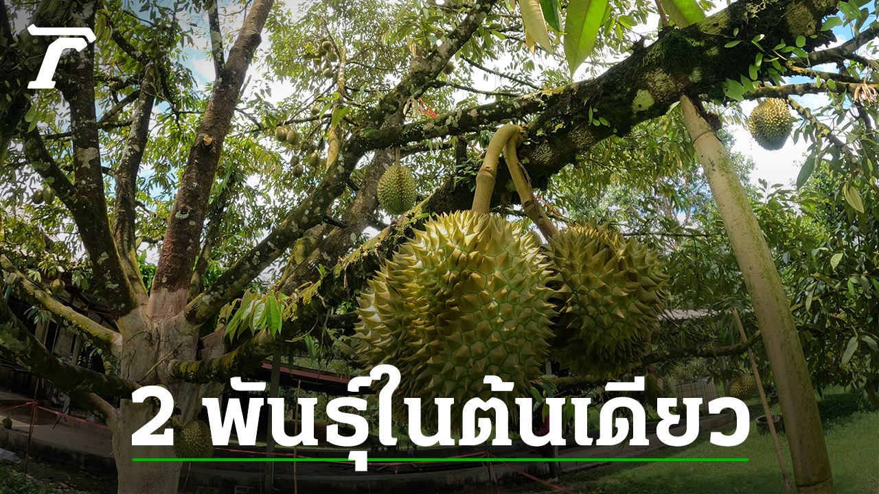 นายรณพล ขวัญเซ่ง กล่าวว่า ทุเรียนต้นนี้ให้ชื่อว่า “ต้นสองสายพันธุ์” เป็นภูมิปัญญาพื้นบ้านที่คุณพ่อปลูกไว้เมื่อประมาณ 15 กว่าปีที่แล้ว โดยการนำเม็ดทุเรียนบ้านมาปลูกประมาณปีเศษ จากนั้นเพื่อนของพ่อได้นำยอดของทุเรียนพันธุ์หมอนทองมาเสียบ ผ่านไปประมาณอีกปีเศษ ก็นำยอดของทุเรียนสาลิกามาเสียบต่อจากยอดหมอนทอง แล้วบำรุงรักษาจนเจริญเติบโต ซึ่งพบว่าส่วนของทุเรียนหมอนทองที่แตกกิ่งก้านจะอยู่ชั้นล่าง ส่วนของสาลิกาจะพุ่งสูงขึ้นชั้นบน โดยทุเรียนต้นนี้ให้ผลผลิตมาแล้วประมาณ 8 ปี แต่ละปีหมอนทองจะให้ลูกประมาณ 80-100 ลูก ขณะที่สาลิกาประมาณ 80 ลูก