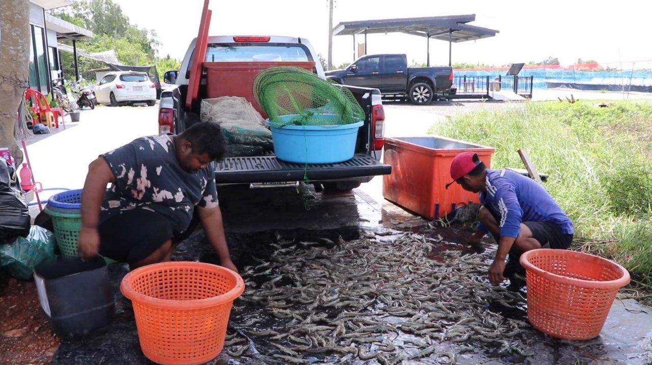 ผู้สื่อข่าวรายงานว่า เกษตรกรผู้เลี้ยงกุ้ง ในพื้นที่ตำบลท่าทอง อ.กาญจนดิษฐ์ จ.สุราษฎร์ธานี กู้ลอบที่วางทิ้งไว้ในบ่อเลี้ยงกุ้งประมาณ 30 นาที เพื่อนำกุ้งที่ได้ส่งให้ลูกค้า ที่สั่งซื้อผ่านออนไลน์ ซึ่งทางฟาร์มเปิดรับออเดอร์สัปดาห์ละ 2 ครั้ง ขายมาแล้ว 3 ครั้งประมาณ 1,000 กิโลกรัม ขายได้ประมาณ 2 แสนบาท ที่ยังไม่หักต้นทุนและค่าดำเนินการ โดยลูกค้าส่วนใหญ่เป็นกลุ่มร้านอาหารที่ต้องการปริมาณมากและได้ของสดในราคาถูกกว่าท้องตลาด ส่วนกุ้งที่เกินออเดอร์ในแต่ละรอบก็จะนำแปรรูปเป็นกุ้งดองซีอิ๊ว