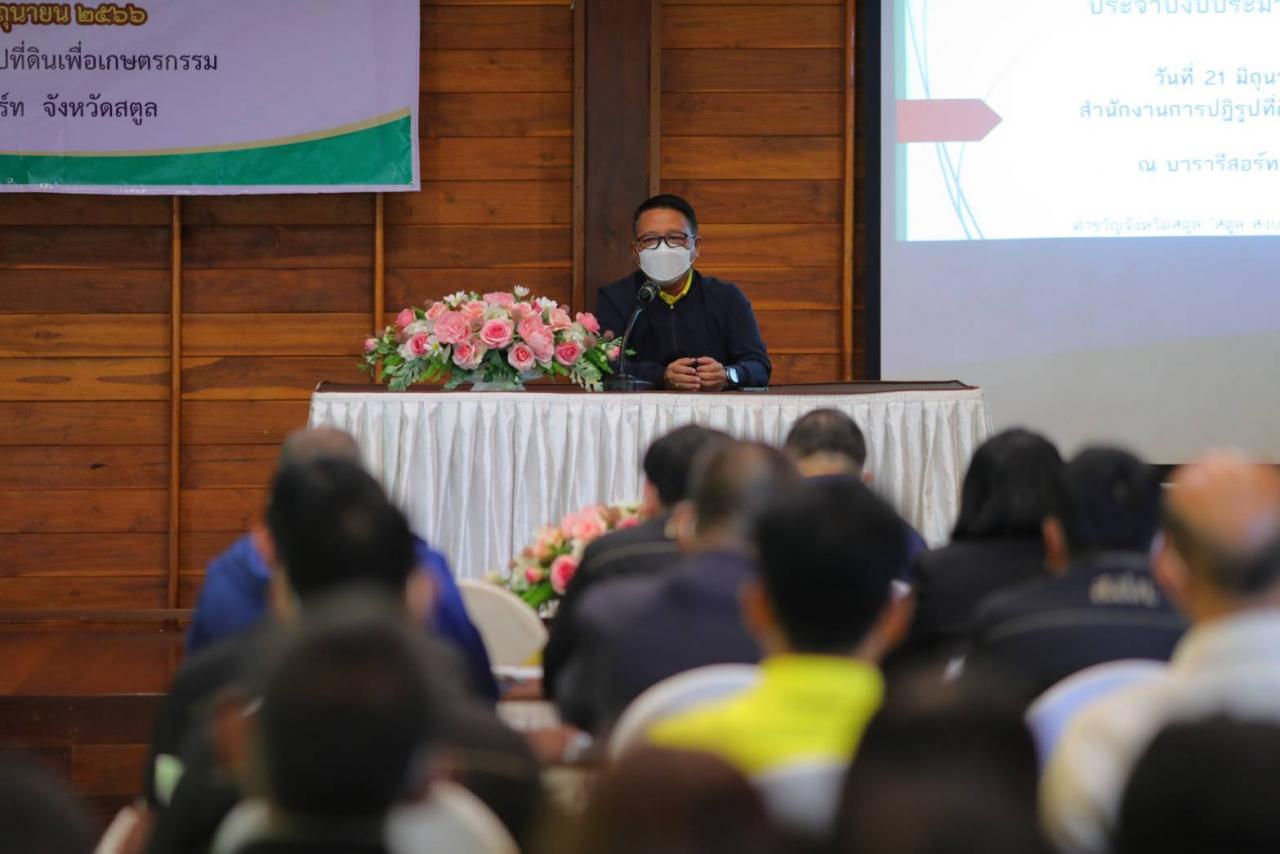 เมื่อวันที่ 22 มิ.ย. 66 ดร.วิณะโรจน์ ทรัพย์ส่งสุข เลขาธิการสำนักงานการปฏิรูปที่ดินเพื่อเกษตรกรรม (ส.ป.ก.) เป็นประธานการประชุมและติดตามผลการดำเนินงานภาคใต้ ประจำปีงบประมาณ 2566 โดยมี รองเลขาธิการ ส.ป.ก., หัวหน้าผู้ตรวจราชการกรม, ผู้ตรวจราชการกรม, ผู้อำนวยการสำนัก/กอง/ศูนย์ และปฏิรูปที่ดินจังหวัดเขตภาคใต้ เข้าร่วมแลกเปลี่ยนและนำเสนอผลการดำเนินงาน ปัญหาและอุปสรรคในการทำงานแต่ละพื้นที่ ณ บารารีสอร์ท อ.ละงู จ.สตูล
