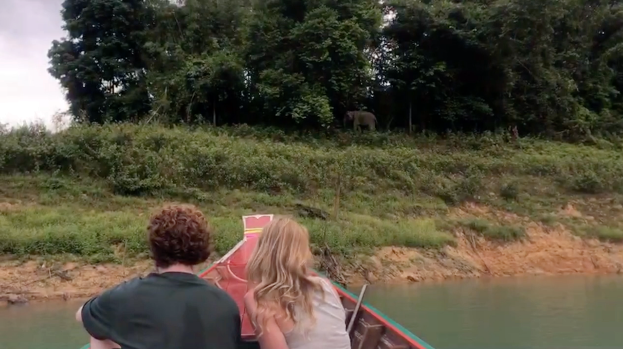 นายกิตติพงษ์ วัญญา ไกด์ท้องถิ่น เล่าว่า ขณะที่ตนกำลังนำท่องเที่ยวชาวต่างประเทศ ซึ่งเป็นกลุ่มชอบท่องเที่ยวและศึกษาธรรมชาติ เดินทางเข้ามาท่องเที่ยวทางตอนบนของเขื่อนรัชชประภาได้พบเห็นช้างป่าจำนวน 7 ตัวกำลังเดินลงมากินน้ำบริเวณคลองโหลง นักท่องเที่ยวชาวต่างชาติดีใจให้ตนนำเรือเข้าไปใกล้ๆ เพื่อที่จะได้ถ่ายรูปช้างทั้ง 7 ตัว