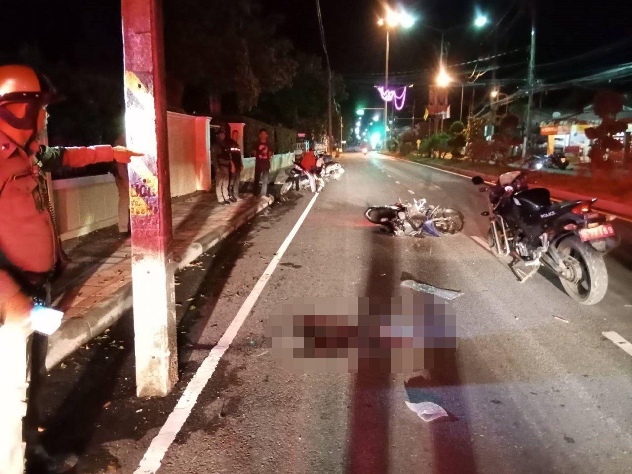 พบสภาพรถ จยย.ด้านซ้ายพังได้รับความเสียหาย และพบรอยเฉี่ยวชนบริเวณโคนเสาไฟฟ้าใกล้กับจุดที่ รถ จยย. ล้มอยู่ มีรอยครูดจากโคนเสาไฟฟ้าเป็นเส้นไปถึง รถ จยย. ตรงเสาไฟฟ้า บนพื้นถนน พบรอยเลือดติดอยู่ และบริเวณใกล้กับโคนเสาไฟฟ้าพบกองเลือดขนาดใหญ่เป็นวงเส้นผ่าศูนย์กลาง 70 เซนติเมตร