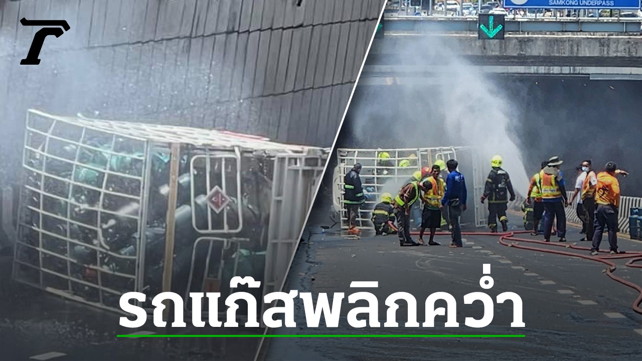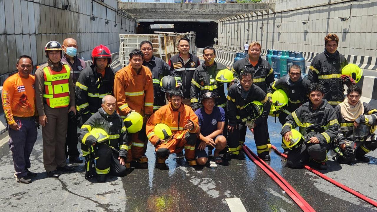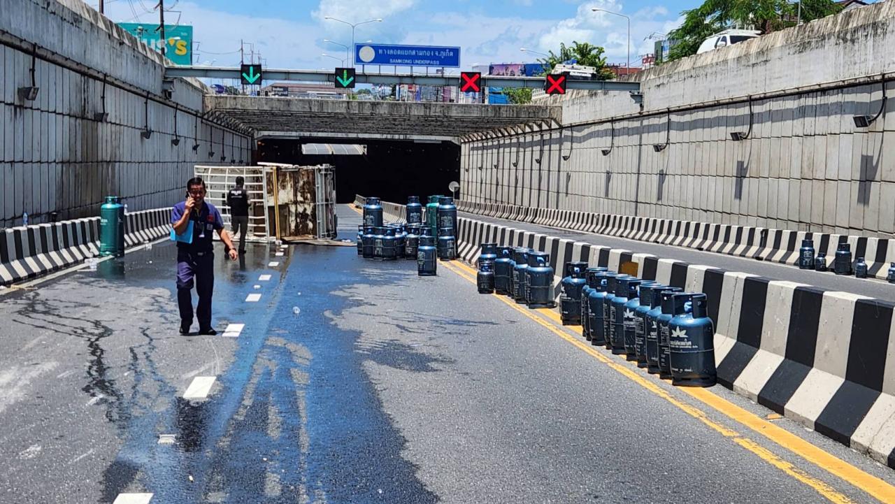 ที่เกิดเหตุพบรถบรรทุกแก๊สหุงต้ม หมายเลขทะเบียน 3ฒม 7243 กทม. พลิกคว่ำตะแคงอยู่ในลักษณะขวางถนน มีถังแก๊สตกเกลื่อนกลิ้งไปทั่วถนน มีกลิ่นแก๊สรั่วไหลเหม็นคละคลุ้งไปทั่วภายในอุโมงค์ แต่ไม่มีแสงเพลิง คาดมีถังแก๊สบางถังรั่ว เจ้าหน้าที่ต้องคัดกรองถังแก๊ส จำนวน 30 ถัง อย่างละเอียด พบแก๊สรั่ว จำนวน 7 ถัง