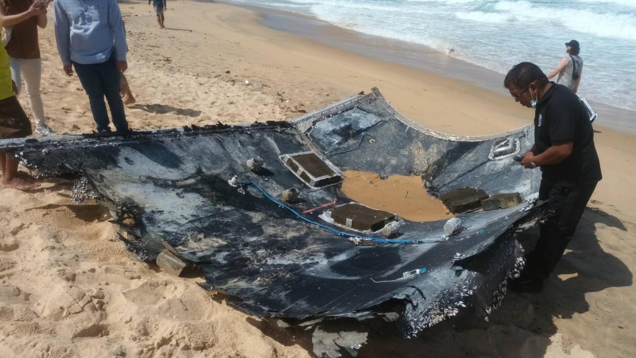 ไลฟ์การ์ดและนักท่องเที่ยวชายหาดกะรน ภูเก็ต ช่วยกันลากวัตถุขนาดใหญ่ ถูกคลื่นซัดเกยหาด ลักษณะคล้ายส่วนลำตัวอากาศยาน ขึ้นมารอเจ้าหน้าที่ผู้เชี่ยวชาญตรวจสอบ