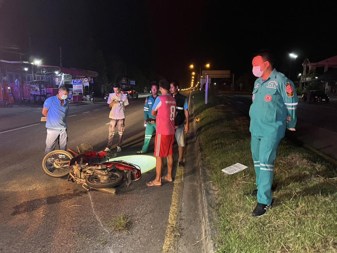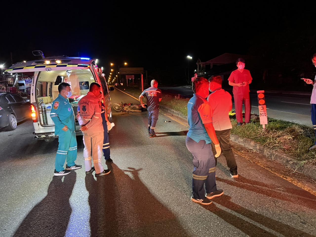 เมื่อเวลา 23.00 น. วันที่ 5 ต.ค. 66 ร.ต.อ.เอกลักษณ์ ศักดิ์ชัยนันท์ รอง สว.สอบสวน สภ.เมืองตรัง ได้รับแจ้งเกิดอุบัติเหตุรถจักรยานยนต์พุ่งชนเกาะกลางถนน มีผู้เสียชีวิตคาที่ 1 ราย เหตุเกิดบนถนนสายตรัง-ปะเหลียน บริเวณหน้าสนามบินตรัง พื้นที่หมู่ 6 ต.บ้านควน หลังรับแจ้งจึงพร้อมด้วยตำรวจสายตรวจ แพทย์เวร รพ.ตรัง หน่วยกู้ชีพ รพ.ธนบุรีตรัง และเจ้าหน้าที่หน่วยกู้ภัยมูลนิธิกุศลสถานตรัง (บ้วนเต็กเซี่ยงตึ๊ง) รุดเดินทางไปตรวจสอบ
