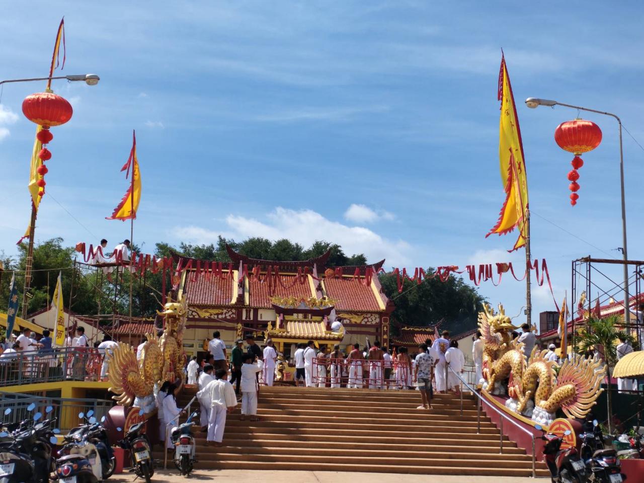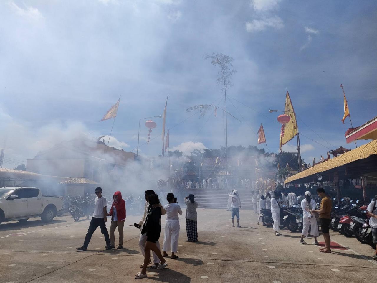 สำหรับในช่วงเวลาค่ำของคืนนี้ เวลา 23.00 น. จะมีการกระทำพิธีอัญเชิญตะเกียงน้ำมัน ขึ้นสู่เสาเต็งโก เพื่อความเป็นสิริมงคล และถือเป็นการเริ่มพิธีถือศีลกินผักที่สมบูรณ์ โดยประเพณีถือศีลกินเจจะเริ่มขึ้นตั้งแต่วันที่ 14-23 ต.ค.นี้