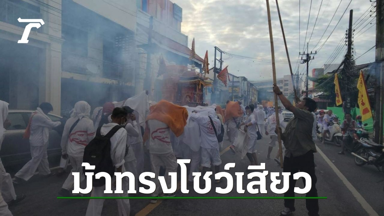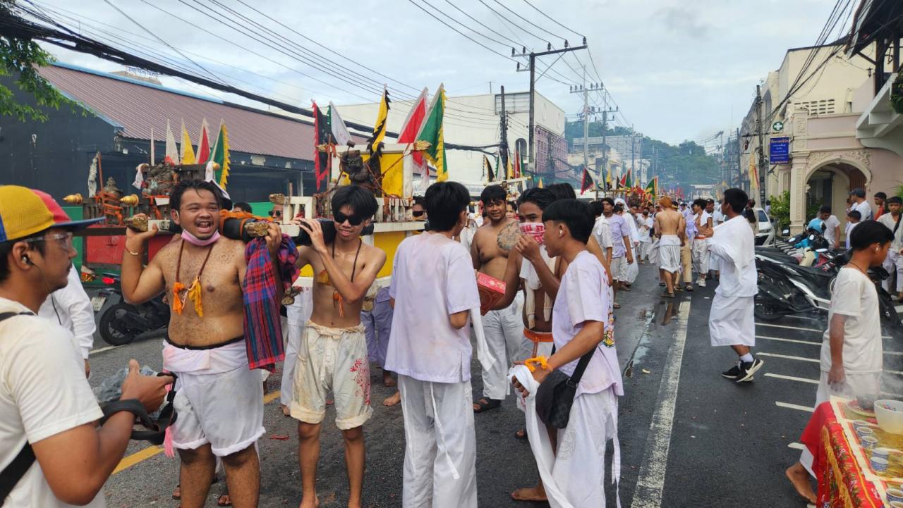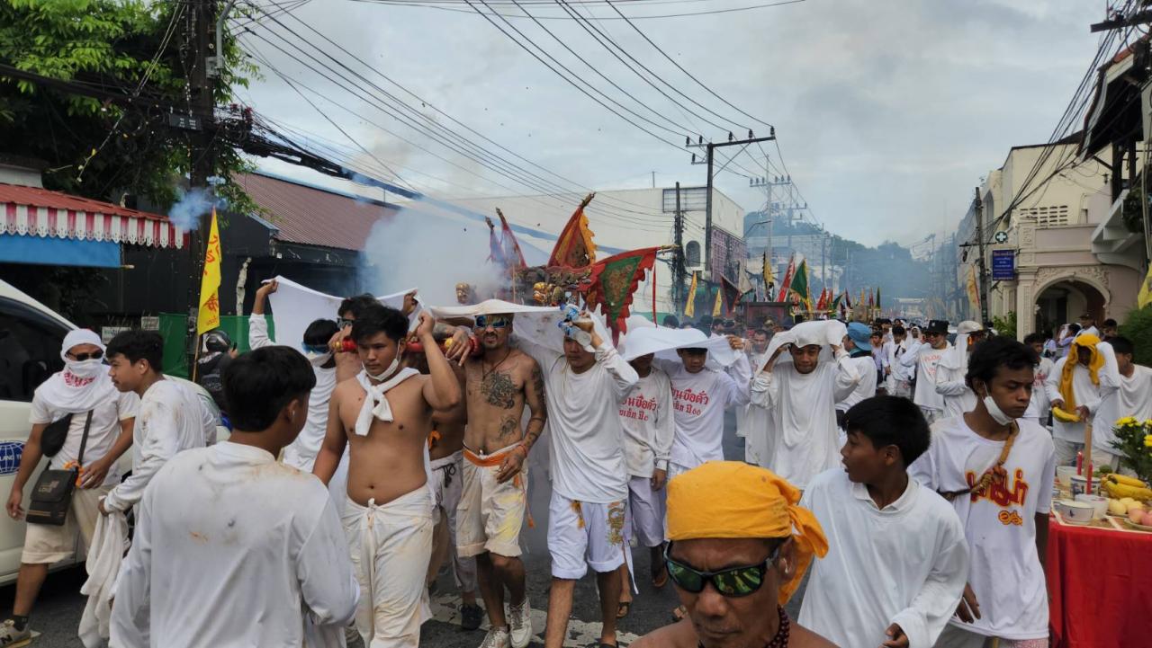 กินเจภูเก็ต วันที่ 3 สุดคึก นทท.ใส่ชุดขาวรอรับองค์พระตามขบวนเส้นทางผ่าน โดยมีพิธีแห่พระรอบเมืองอ๊ามสามกองคึก ม้าทรงทิ่มแทงร่างกายหวาดเสียว