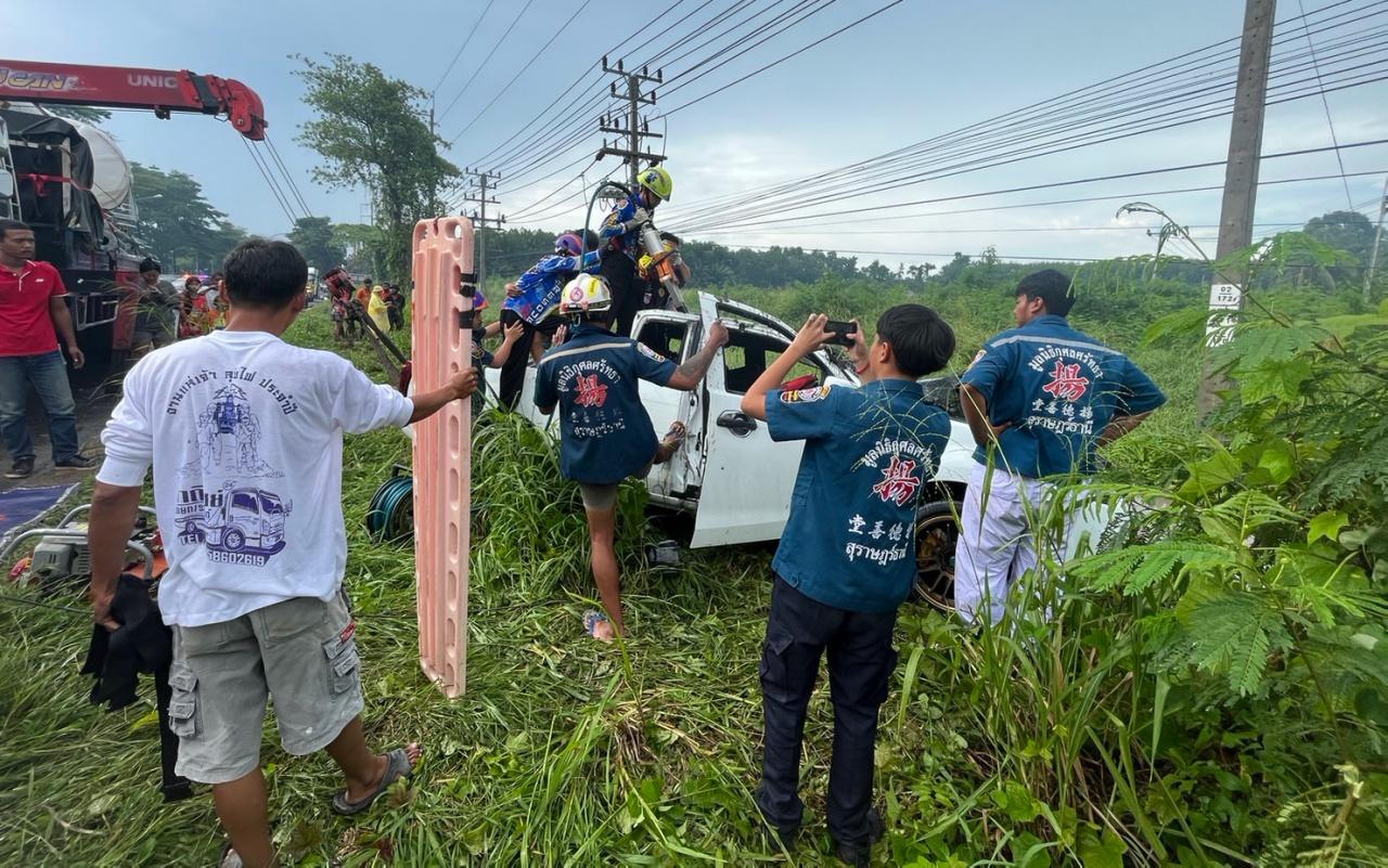 เวลา 15.00 น. วันที่ 18 ตุลาคม ศูนย์วิทยุ สภ.กาญจนดิษฐ์ จ.สุราษฎร์ธานี รับแจ้งมีเหตุรถกระบะพลิกคว่ำตกถนนทางหลวง 401 สุราษฎร์ธานี-นครศรีธรรมราช (ฝั่งมุ่งหน้าไปนครศรีธรรมราช) ฝั่งตรงข้ามหน้าโรงงานถุงมือ ท้องที่หมู่ 7 ต.พลายวาส อ.กาญจนดิษฐ์ มีผู้บาดเจ็บหลายรายติดอยู่ในรถ จึงรายงาน ร.ต.อ.กนกภพ สุวรรณะ ร้อยเวรเจ้าของคดี พร้อมประสานอาสาสมัครกู้ภัยกาญจนดิษฐ์ กู้ภัยเพชรพนมวัง และขอสนับสนุนอุปกรณ์ตัดถ่างกู้ภัยเพชรพนมวัง ไปช่วยเหลือ