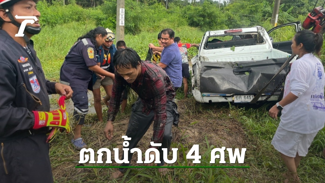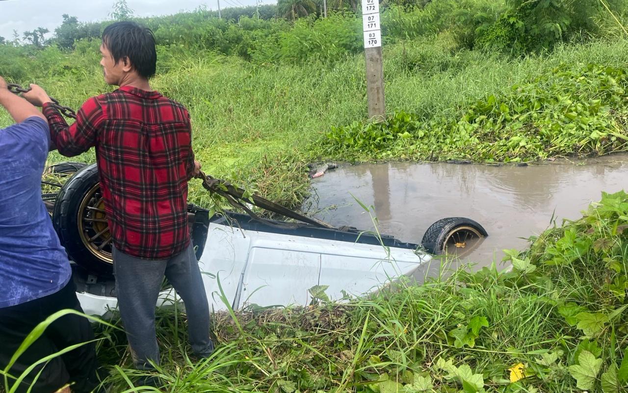 ที่เกิดเหตุพบรถกระบะ อีซูซุ สีขาว แบบตอนครึ่ง ทะเบียน ยค 6451 เชียงใหม่ สภาพพลิกคว่ำหงายท้องตกลงจมในคูน้ำข้างถนนท่วมมิดเกือบทั้งคัน ต้องใช้รถยกนำขึ้นมาและใช้อุปกรณ์ตัดถ่างนำผู้บาดเจ็บทั้งหมด 4 คนออกมา พบรายที่ 1 ชื่อนายไพสิทธิ์ ภูเขาทอง อายุ 51 ปี อยู่หมู่ 1 ต.วัดประดู่ อ.เมืองสุราษฎร์ธานี เป็นคนขับ รายที่ 2 เด็กหญิง ธัญญารัตน์ แก้วบัวทอง อายุ 13 ปี รายที่ 3 นางสาว ศิริรัตน์ บุตรเกิด อายุ 29 ปี และรายที่ 4 นายประกิต ช่วยมา ทั้งหมดไม่รู้สึกตัว กู้ภัยกาญจนดิษฐ์ได้ทำซีพีอาร์ ก่อนนำส่ง โรงพยาบาลกาญจนดิษฐ์ เมื่อถึงโรงพยาบาลแพทย์เวรแจ้งว่าทั้ง 4 เสียชีวิตมาก่อนแล้ว เนื่องจากจมน้ำ ขาดอากาศหายใจ ตำรวจอยู่ระหว่างสอบสวนหาสาเหตุ