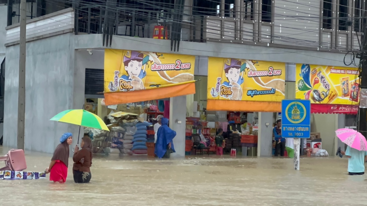 ฝนถล่มนราธิวาส 3 วัน 3 คืน ตกต่อเนื่อง ท่วมแล้ว 9 อำเภอ น้ำเซาะตอม่อสะพาน ส่งผลให้รถไฟขึ้น-ล่อง 14 ขบวนต้องหยุดวิ่ง ชาวบ้านตันหยงมัส อ.ระแงะ เจอน้ำท่วมหนักสุดรอบ 40 ปี ขอความช่วยเหลือเร่งด่วน บางบ้านมีเด็กคนแก่อยู่ด้วย ยังออกมาไม่ได้