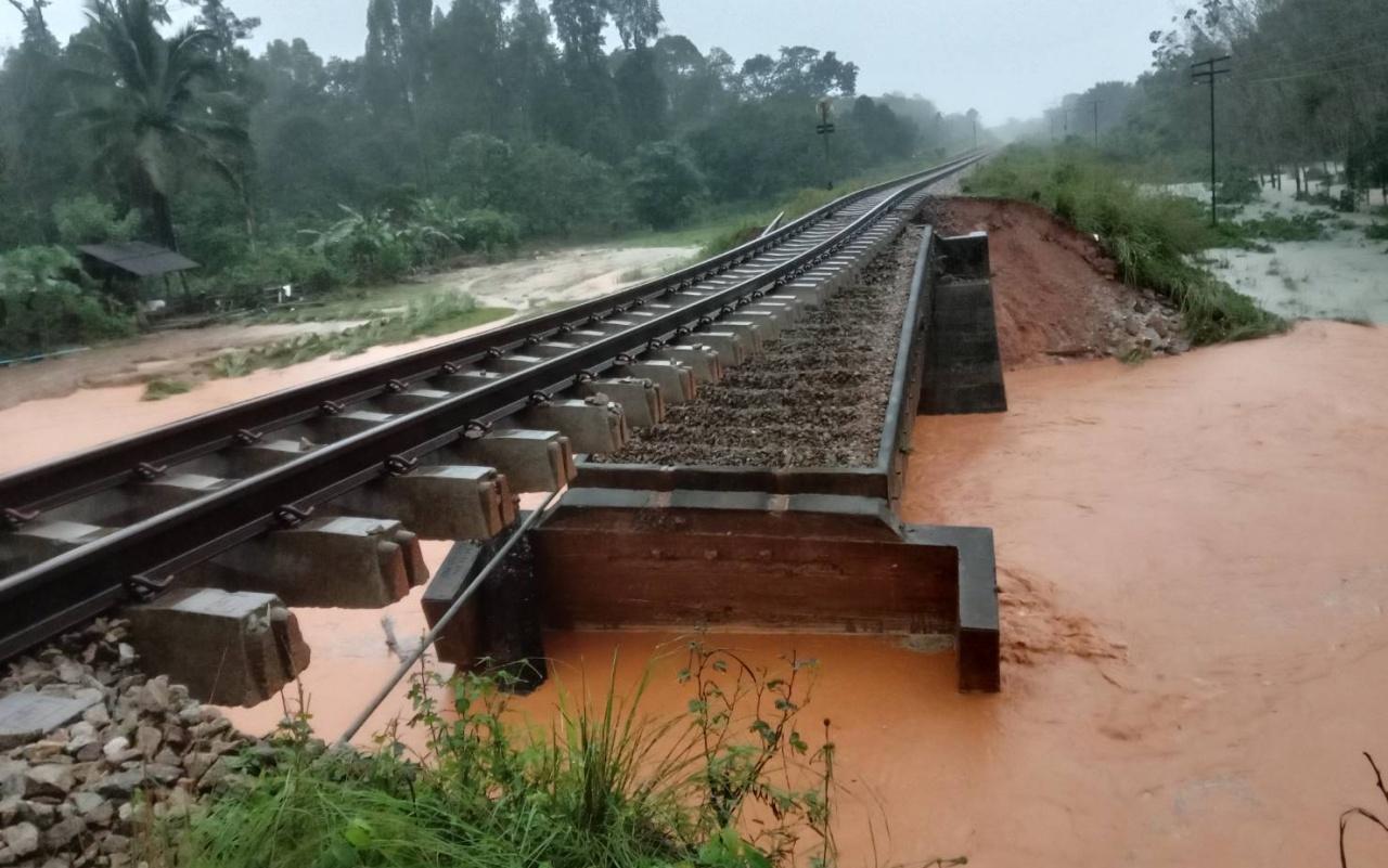 นอกจากนี้ ขบวนรถไฟที่วิ่งต้นทางจากสถานีรถไฟสุไหงโก-ลก ปลายทางสถานีรถไฟต่างๆ ทั้งขาขึ้นและขาล่อง จำนวนทั้งสิ้น 14 ขบวน ต้องหยุดให้บริการประชาชนเป็นการฉุกเฉิน เนื่องจากเส้นทางขาดที่บ้านกำปงปาเร๊ะ ม.8 ต.มะรือโบตก อ.ระแงะ จากกระแสน้ำที่ไหลเชี่ยวกรากกัดเสาะจนตอม่อของสะพานรถไฟทรุดตัว ส่วนผู้ใช้บริการรถด่วน รถเร็ว ขบวนสุไหงโก-ลก ปลายทางสถานีรถไฟกรุงเทพอภิวัฒน์ จะให้บริการต้นทางปลายทางจากสถานีรถไฟยะลา และขนถ่ายผู้โดยสารโดยรถยนต์ สำหรับรถไฟขบวนท้องถิ่น จะเริ่มวิ่งและสิ้นสุดที่สถานีรถไฟยะลาเท่านั้น