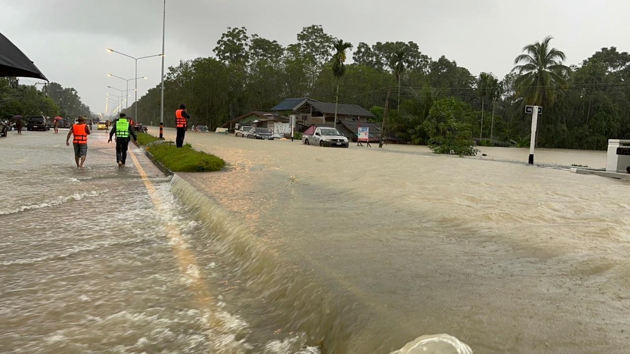 มวลน้ำจากฝนตกหนักต่อเนื่องใน จ.นราธิวาส ทะลักท่วมพื้นที่ทั้ง 13 อำเภอ ผบ.ฉก.นราธิวาส ลุยน้ำเองช่วยอพยพชาวระแงะ ที่มีปริมาณน้ำฝนถึง 631.2 มม. มากเป็นประวัติการณ์ ขณะที่ ต.ลำภู อ.เมือง ชาวบ้านตกใจกับมวลน้ำปริมาณมหาศาล บอก 50 ปีที่เกิดมาไม่เคยเห็นน้ำมามากขนาดนี้