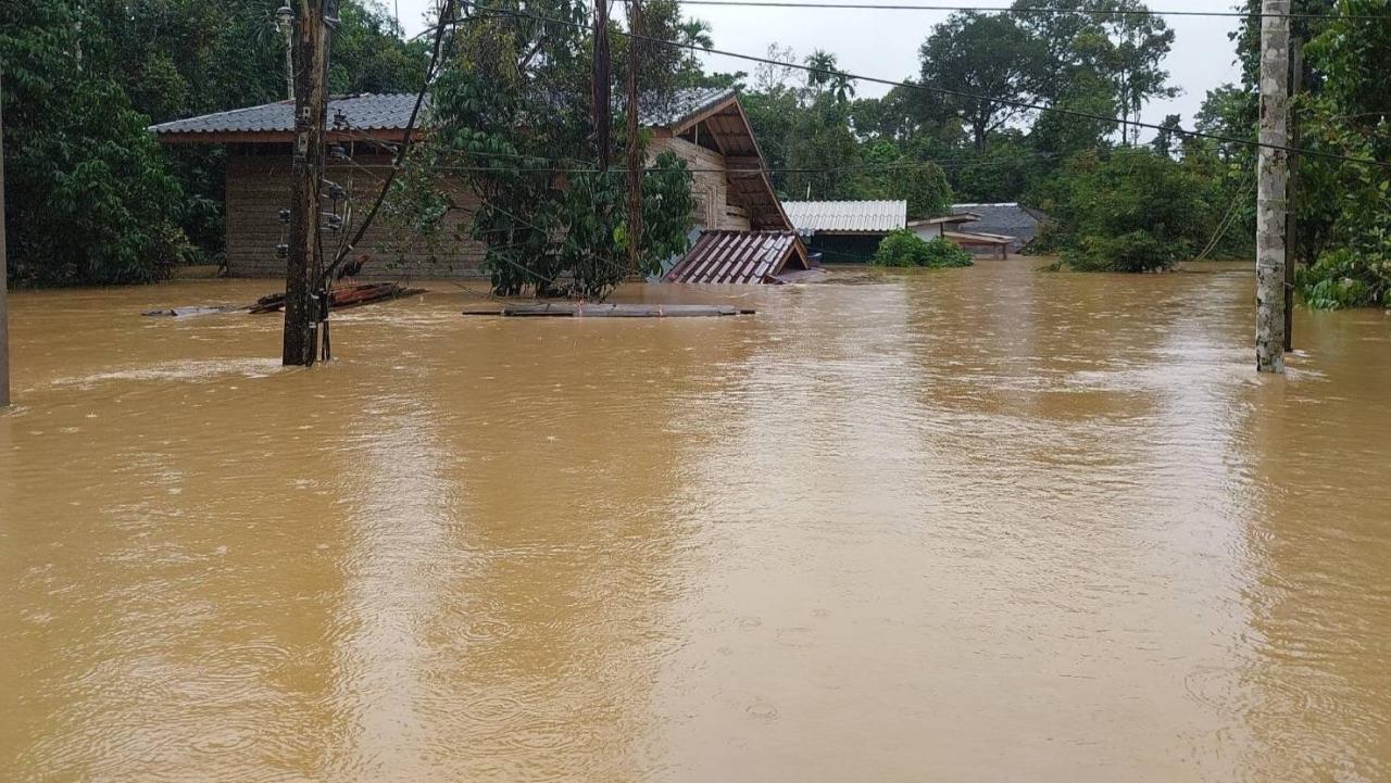 เมื่อวันที่ 26 ธ.ค.66 นายวสันต์ ไชยทวีวงศ์ หัวหน้าสำนักงานป้องกันและบรรเทาสาธารณภัยจังหวัดนราธิวาส กล่าวว่า กองอำนวยการป้องกันและบรรเทาสาธารณภัยจังหวัดนราธิวาส รายงานสถานการณ์อุทกภัย หลังเกิดฝนตกหนักช่วงวันที่ 22-25 ธ.ค.ที่ผ่านมา มีพื้นที่ได้รับผลกระทบทั้ง 13 อำเภอ 68 ตำบล 410 หมู่บ้าน ประชาชนได้รับความเดือดร้อน 28,049 ครัวเรือน 109,545 คน อีกทั้งโรงเรียน 254 แห่ง วัด 18 แห่ง มัสยิด 13 แห่ง ถนน 2 สาย สะพาน 1 แห่ง เป็นต้น